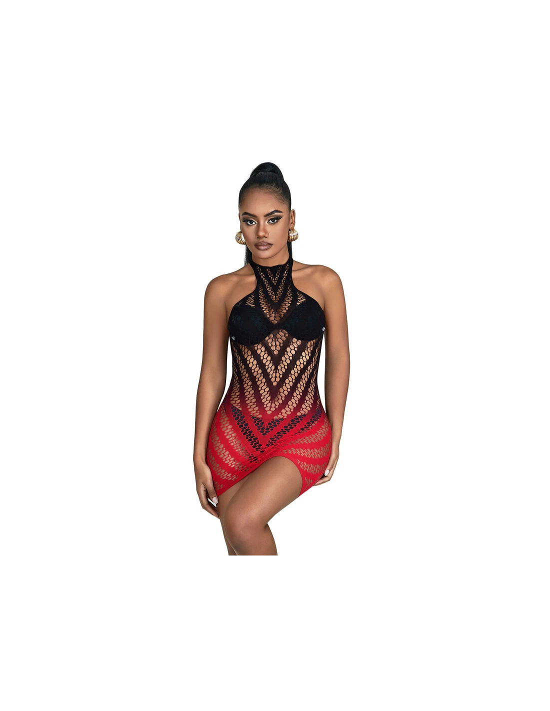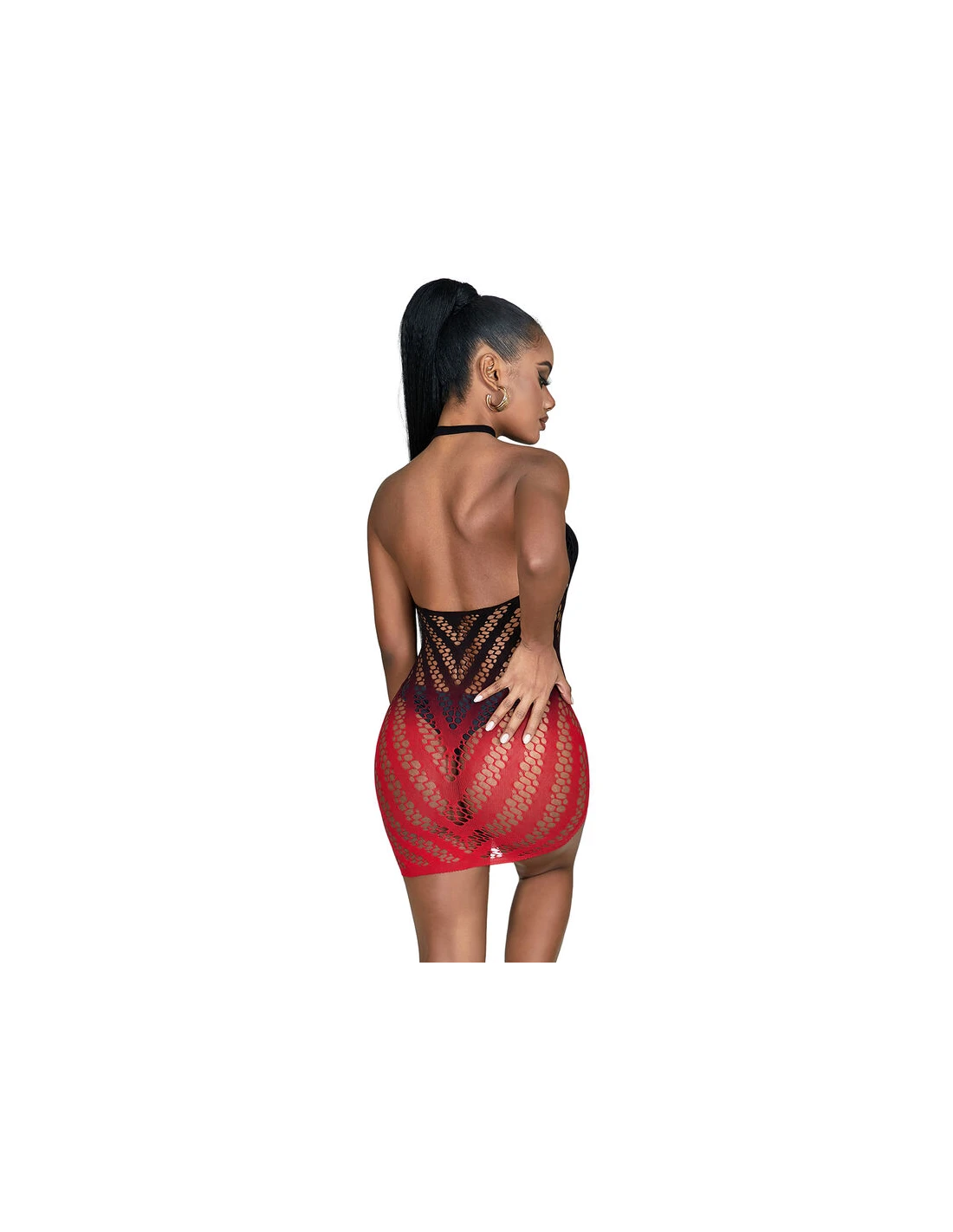 SUBBLIME - 952242 VESTIDO DE REJILLA ELÁSTICO DEGRADADO ROJO Y NEGRO TALLA ÚNICA