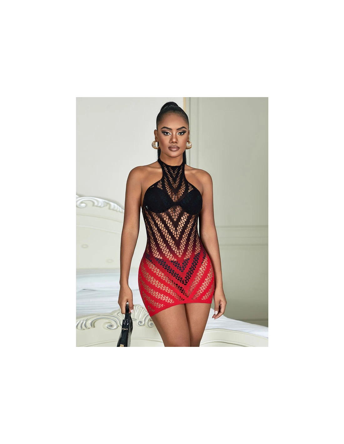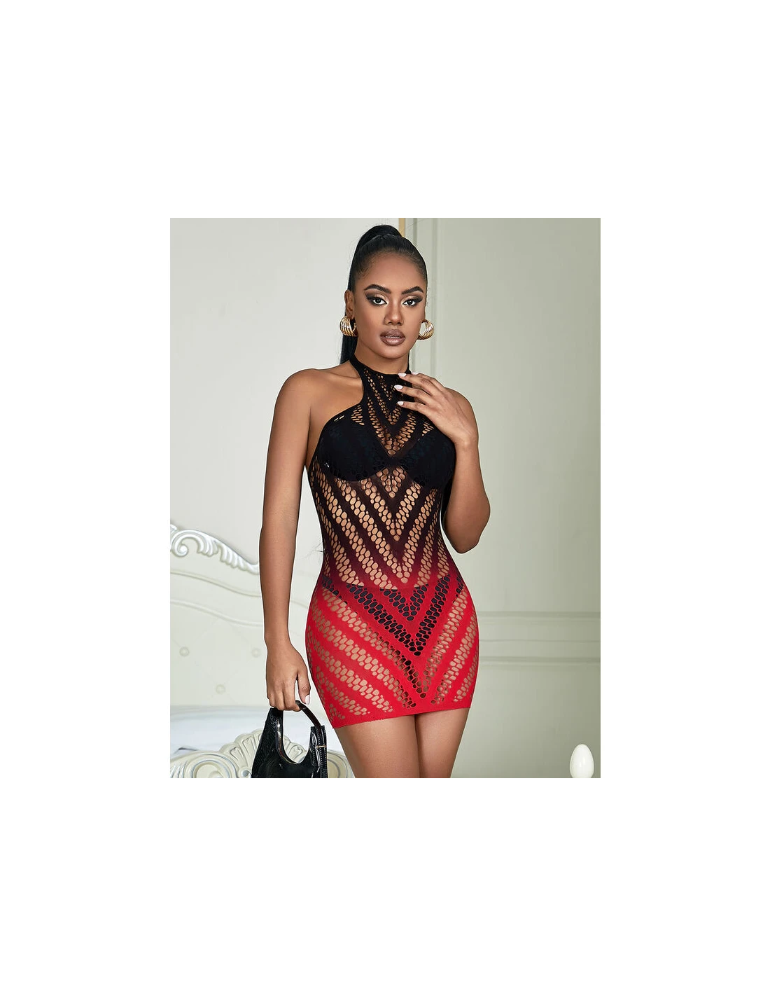 - Patrón: Degradado en negro y rojo.