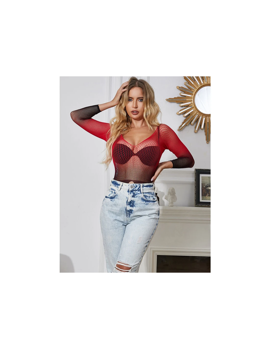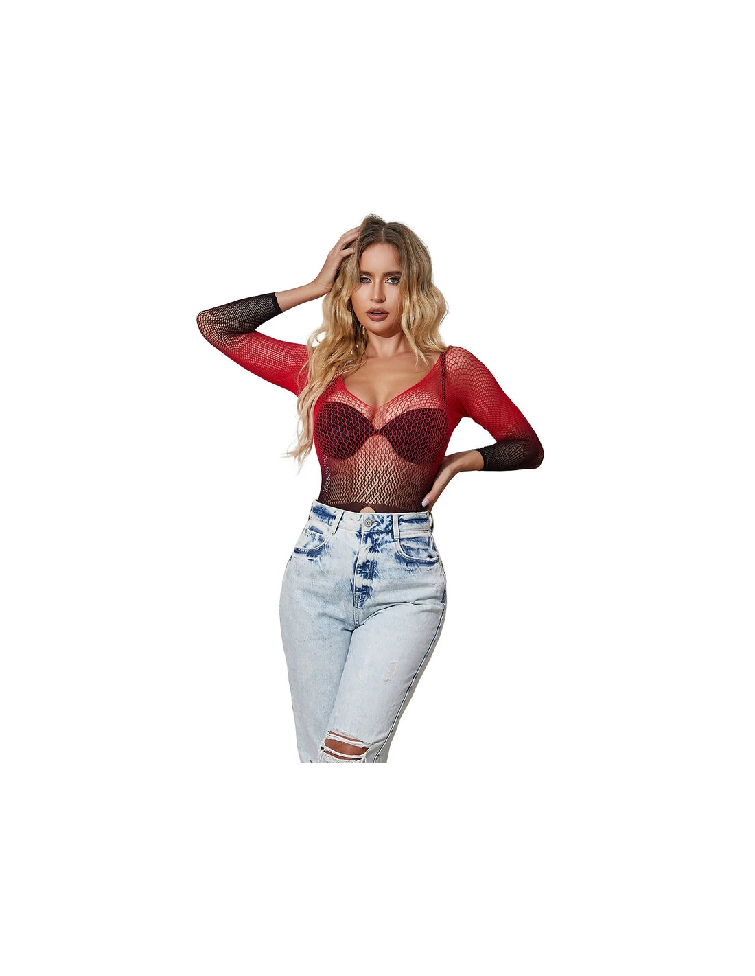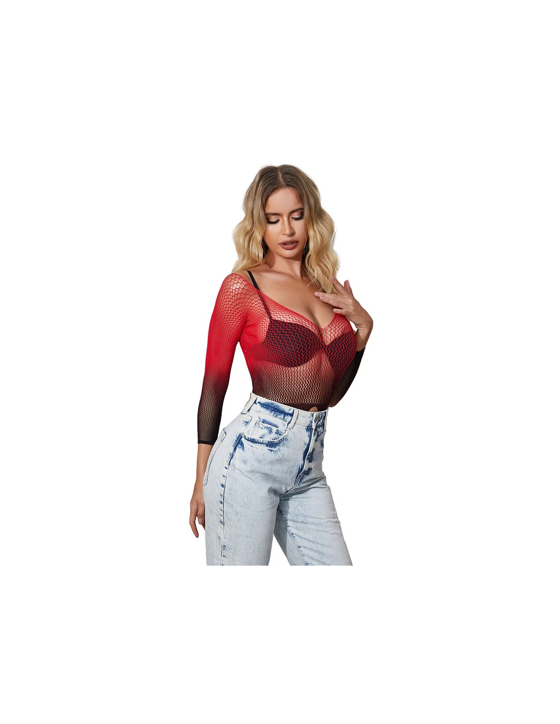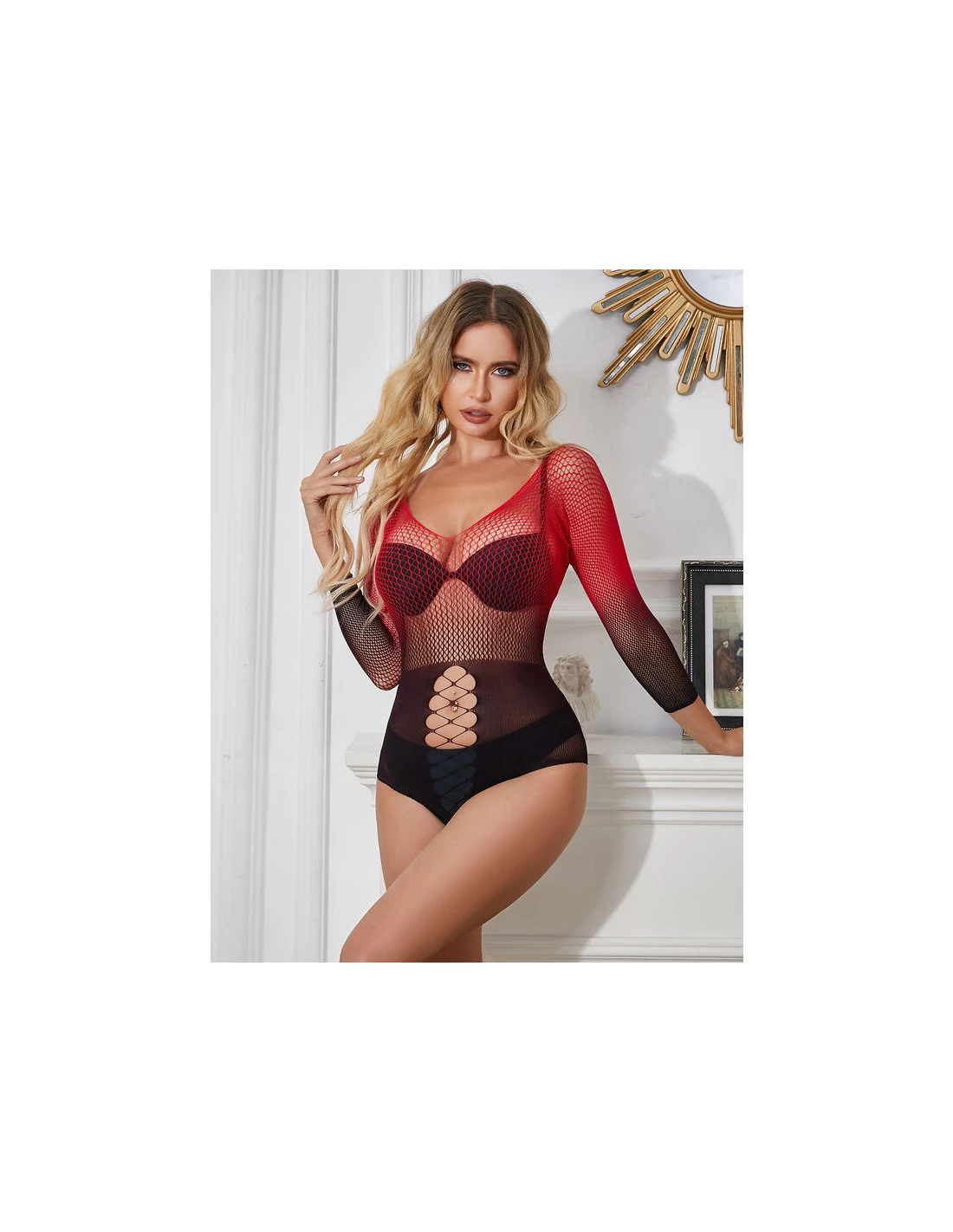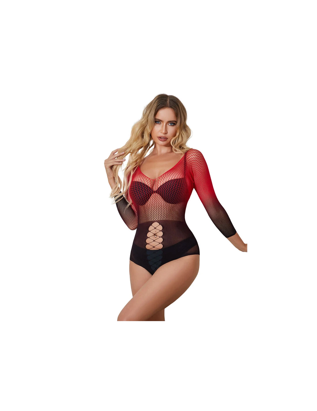 SUBBLIME - 952259 VESTIDO DE REJILLA ELÁSTICO MANGA LARGA DEGRADADO ROJO Y NEGRO TALLA ÚNICA