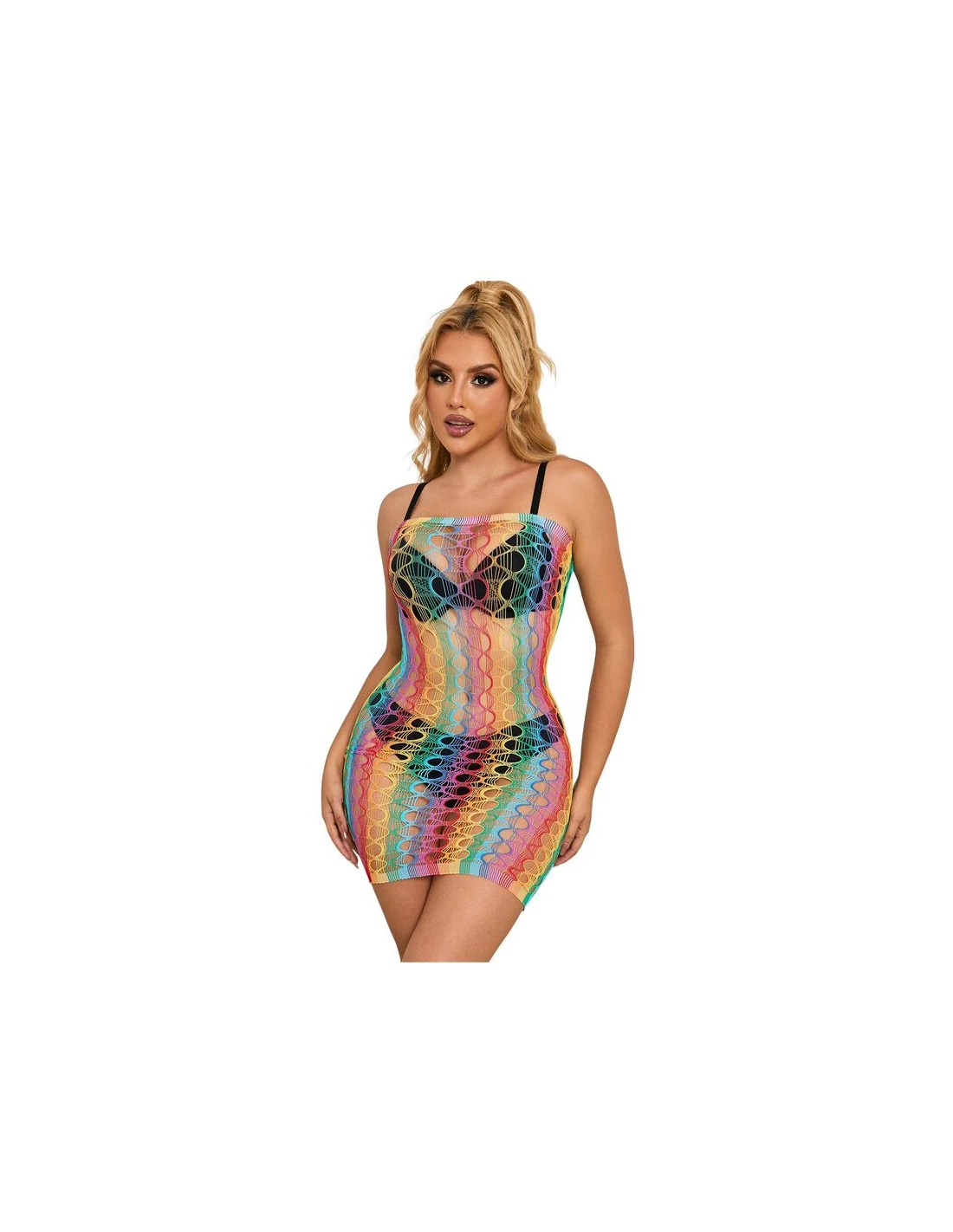 SUBBLIME - 952365 VESTIDO DE REJILLA HOMBROS DESCUBIERTOS ARCOIRIS TALLA ÚNICA