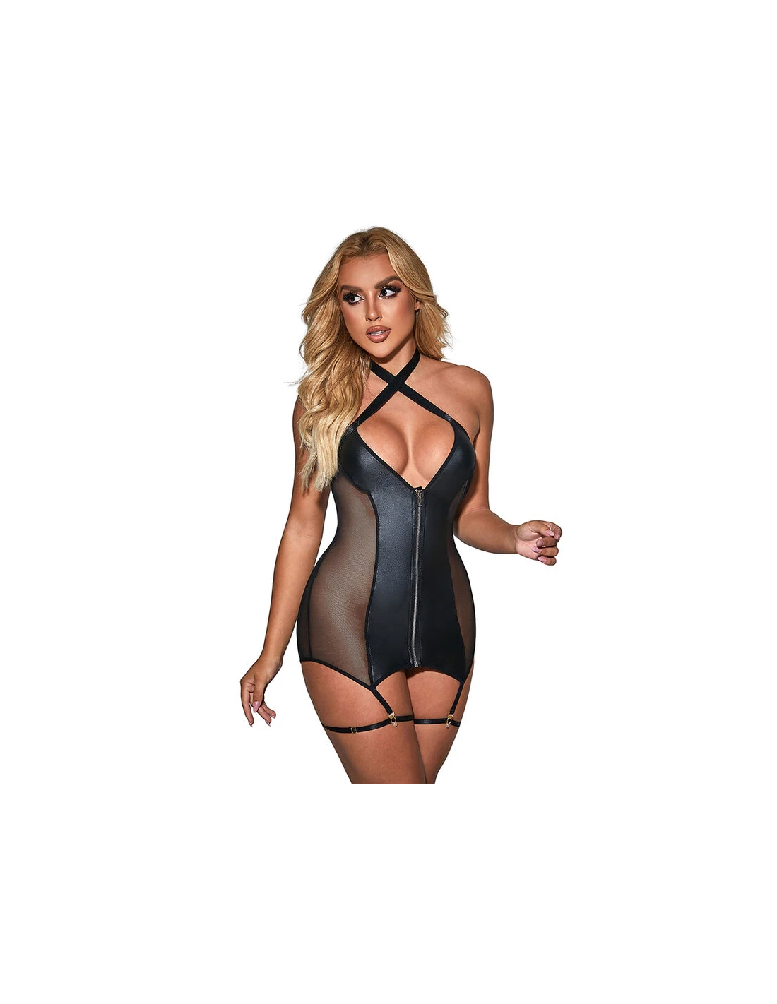 SUBBLIME - 954451 VESTIDO SEXY DE REJILLA CUERO NEGRO L/XL