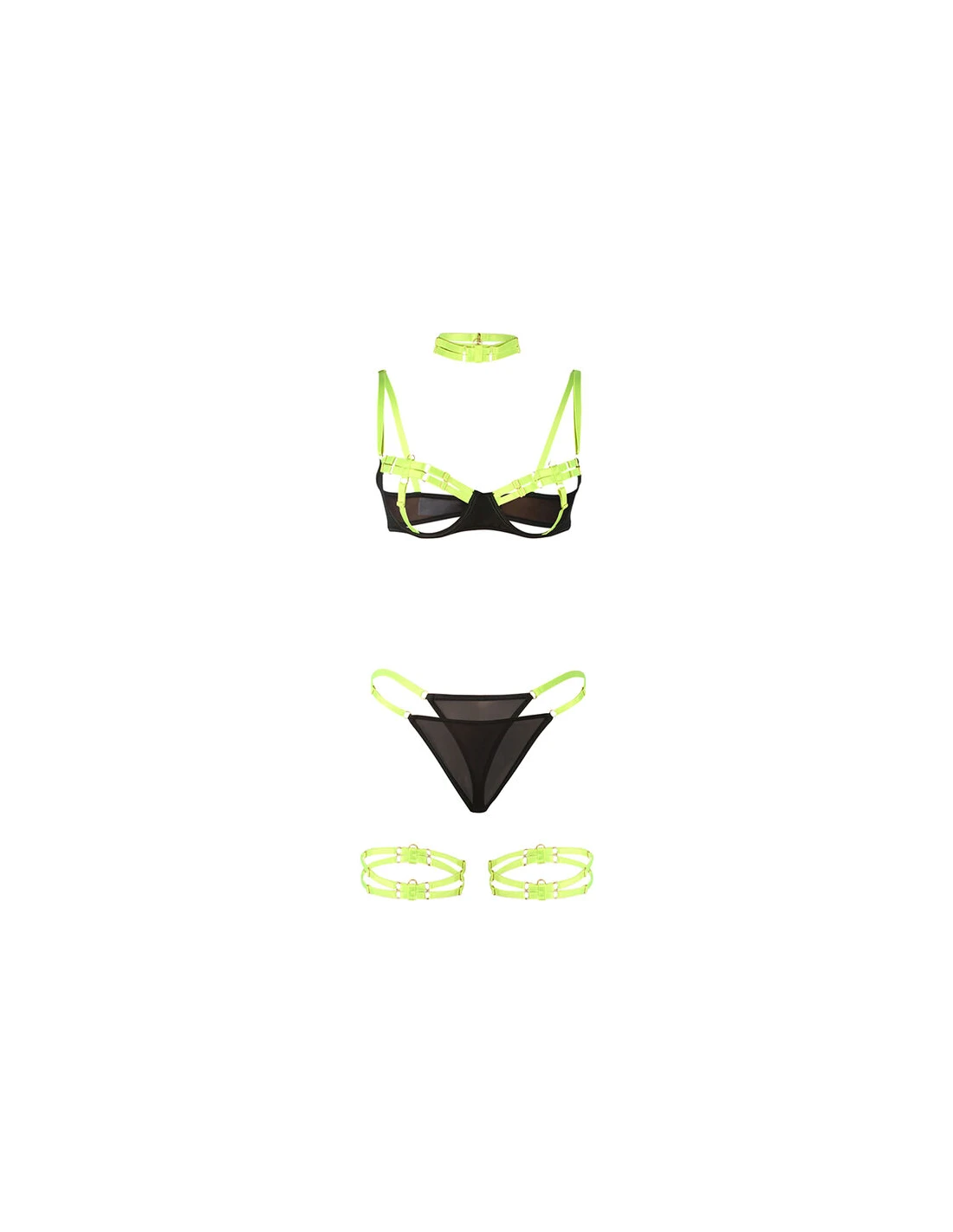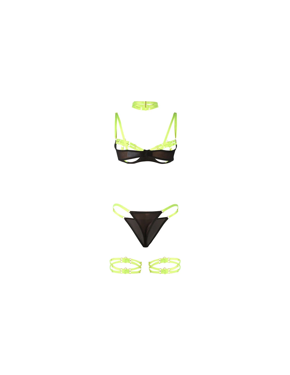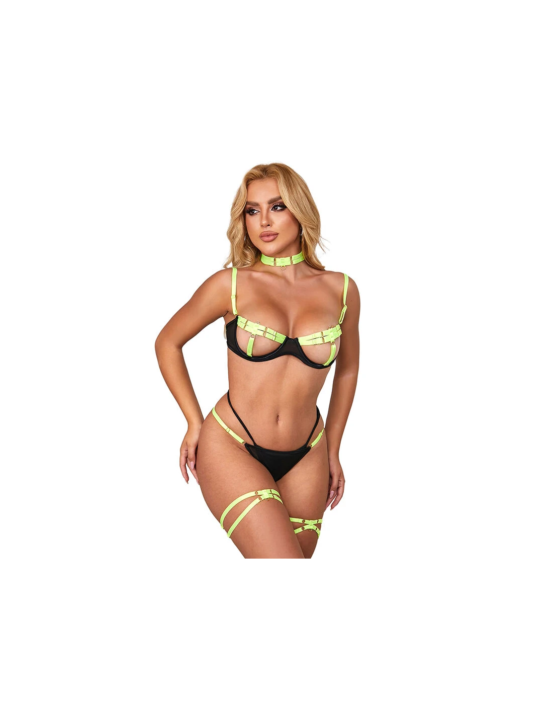 SUBBLIME - 955274 SET SUJETADOR CON COLLAR Y DETALLES PARA PIERNAS VERDE FLUORESCENTE S/M