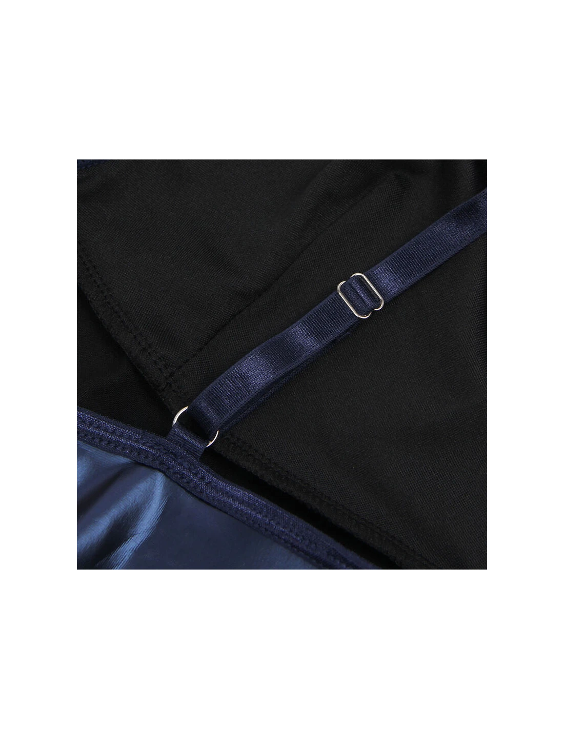 Confeccionado con una mezcla de 95% poliéster y 5% elastano/spandex, este conjunto ofrece un ajuste perfecto y flexible que se adapta de manera cómoda a tus curvas. El acabado en cuero PU en color azul vibrante le aporta un toque de lujo y modernidad, mientras que los tirantes ajustables permiten personalizar el ajuste para mayor confort y soporte. El color azul, fresco y llamativo, añade un aire de sofisticación que hará que te sientas única y segura.