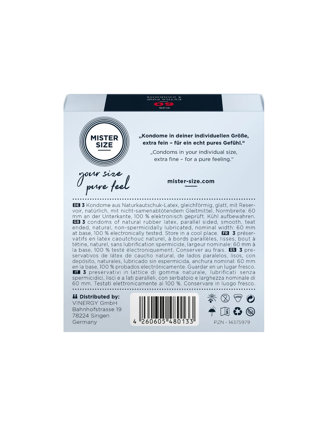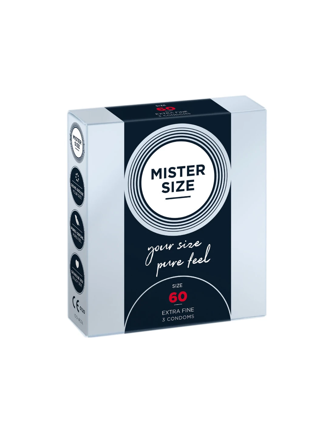 en un condón demasiado apretado. Pero ten la seguridad de que con MISTER SIZE 60 todo encaja perfectamente y puedes relajarte y concentrarte por completo en todo lo bueno. Así que disfruta del momento y vuela a alturas inesperadas.