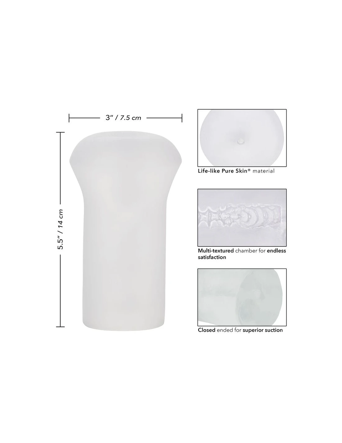 Material de piel pura realista | Suave, apretado y elástico | Cámara multitextura para una satisfacción infinita | Extremo cerrado para una succión superior | Higiénicamente superior y sin mantenimiento