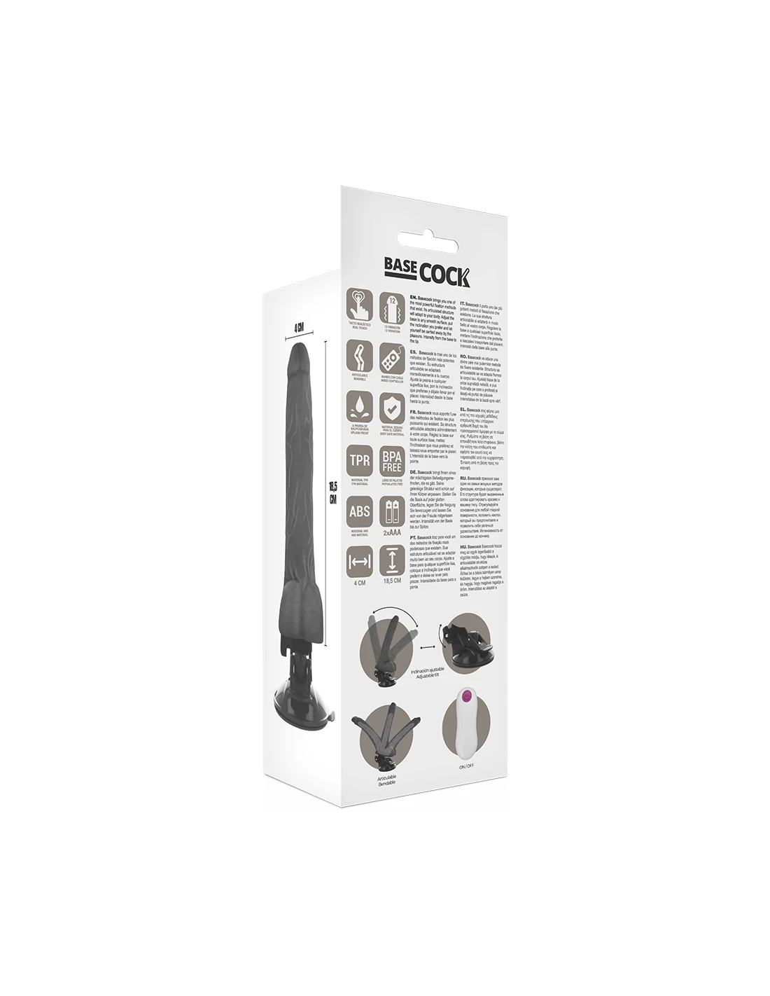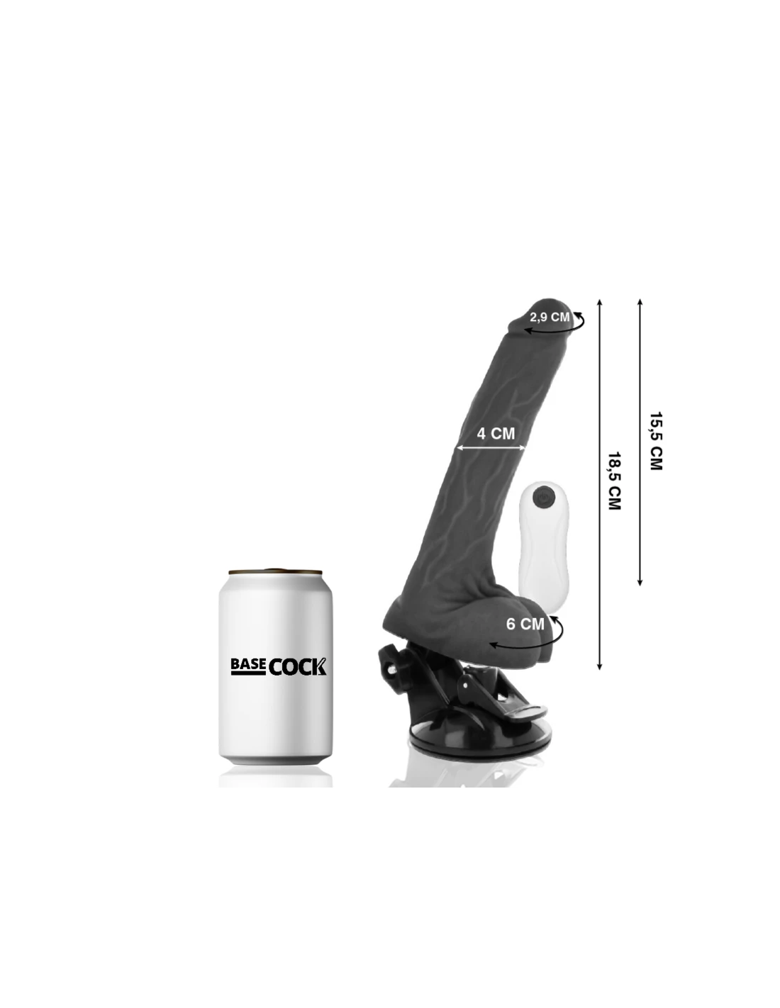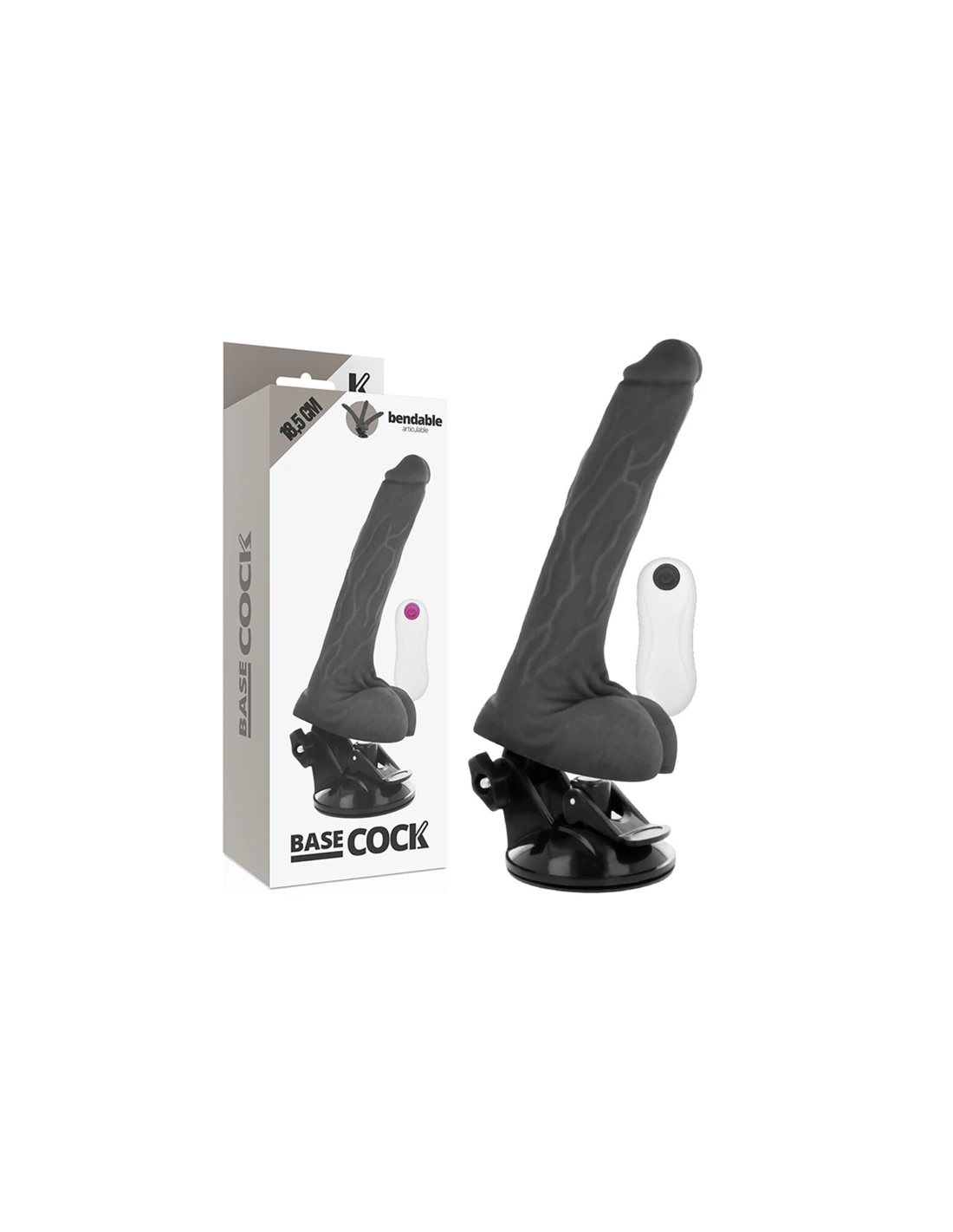 BASECOCK VIBRADOR REALISTICO ARTICULABLE CONTROL REMOTO NEGRO 185 CM O 4 CM