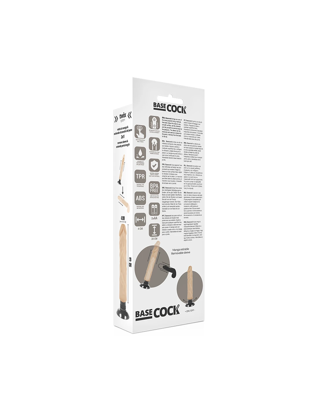 BASECOCK - VIBRADOR REALÍSTICO 2-1 NATURAL 20 CM -O- 4 CM