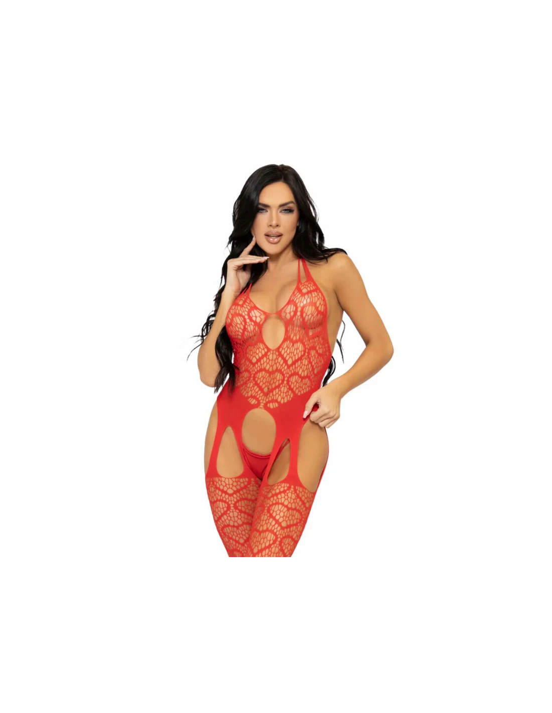 LEG AVENUE - BODYSTOCKING DE RED CON TIRANTES TALLA ÚNICA - NEGRO