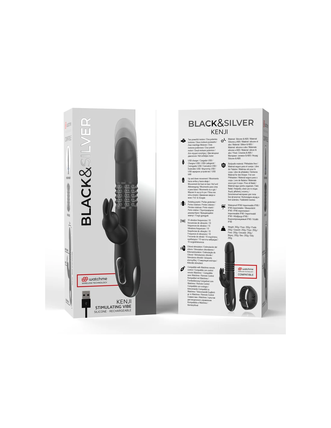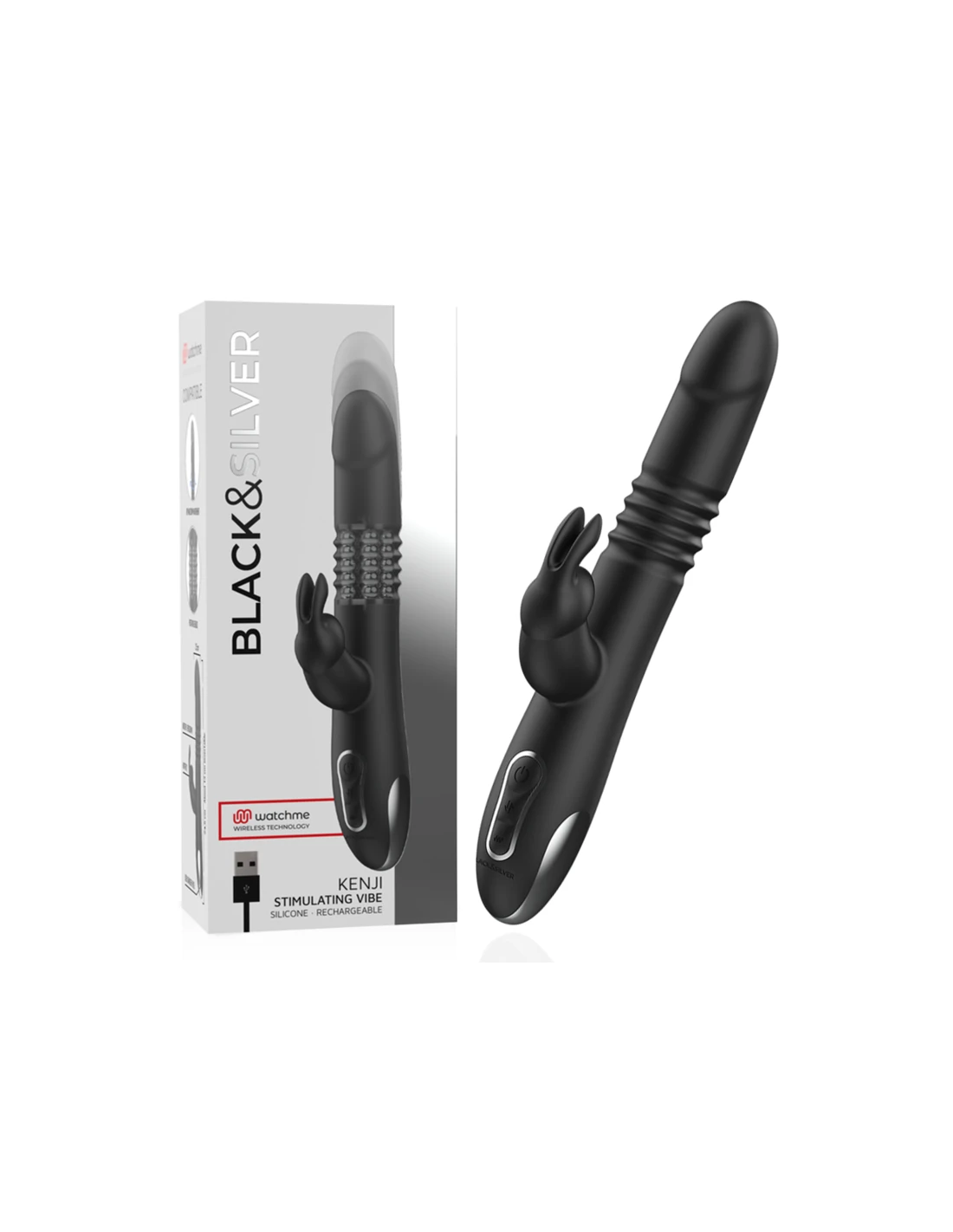 BLACK&SILVER - KENJI VIBRADOR RABBIT UP & DOWN COMPATIBLE CON WATCHME