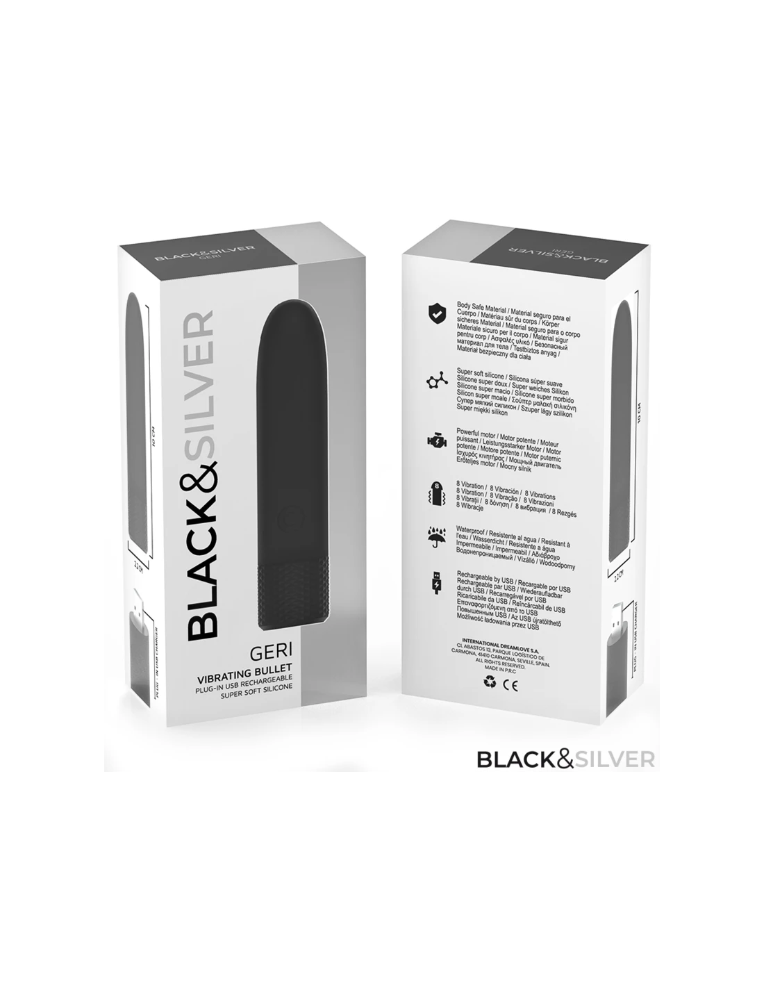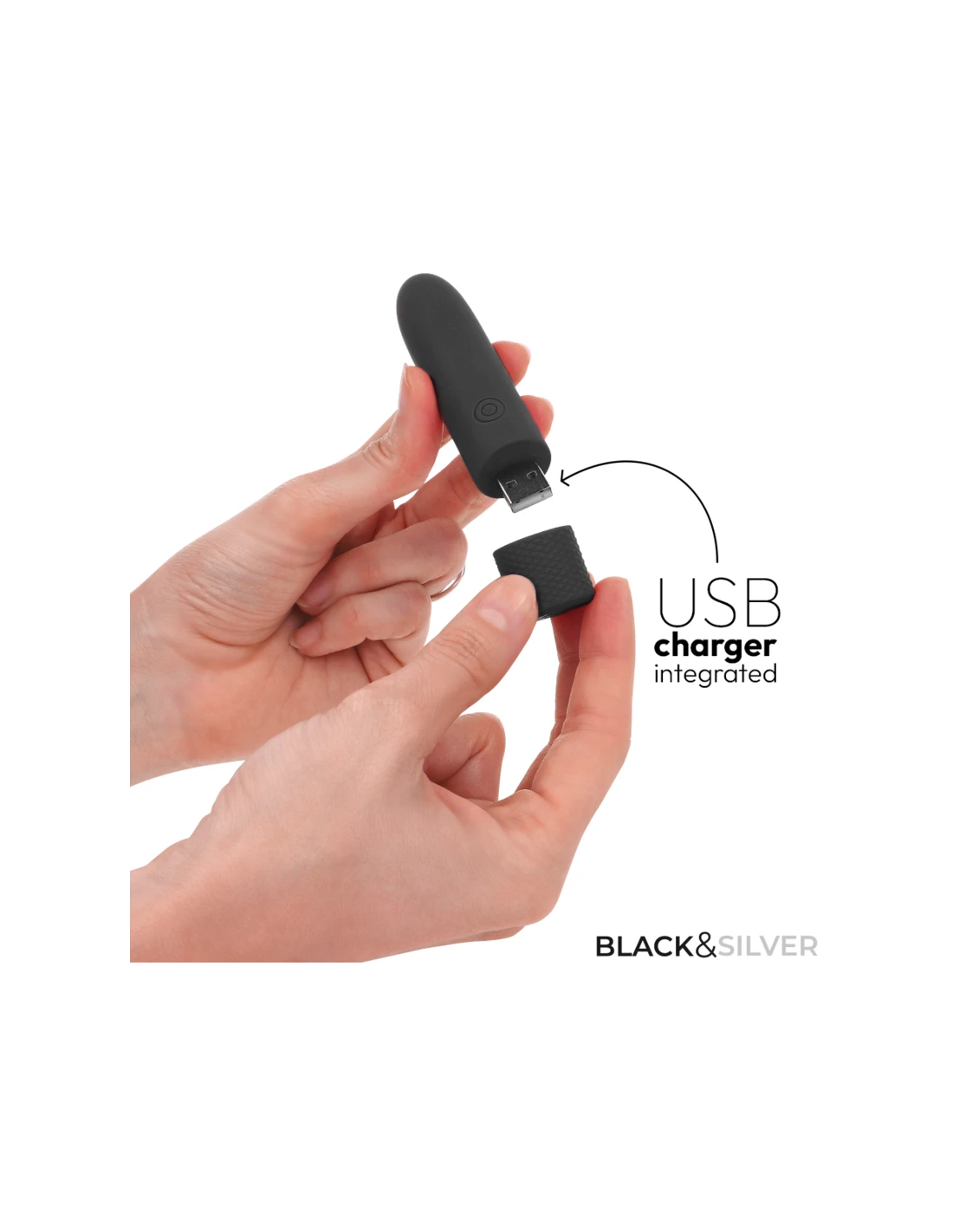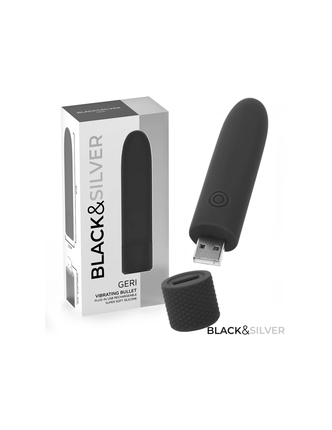 BLACK & SILVER - GERI BALA VIBRADORA RECARGABLE POR USB 8 VIBRACIONES NEGRO 10 X 2.2 CM
