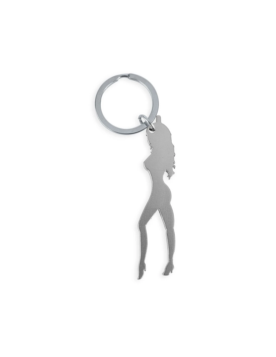 Este llamativo llavero metálico en color plata presenta la silueta de una mujer con curvas, ideal para quienes buscan estilo, picardía y funcionalidad en un solo objeto. Incorpora abridor de cerveza integrado, lo que lo convierte en un artículo práctico y divertido para llevar a todas partes.