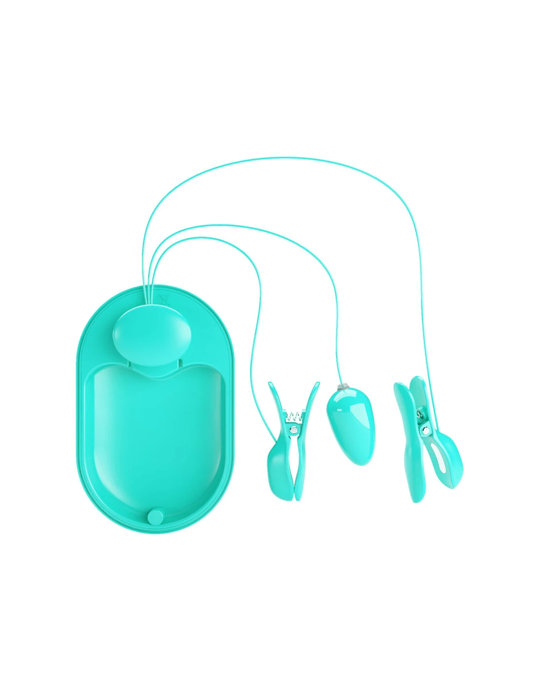 ¡Estas fabulosas pinzas son ideales para los amantes de la estimulación del pezón! Con este sistema compacto obtendrás pinzas para pezones, una increíble electroestimulación de pezones y una potente vibración, ¡todo de una vez! Las puntas están acolchadas para total comodidad y agarre. ¡Sujételos con fuerza, aumente las vibraciones y disfrute de una estimulación alucinante del pezón!