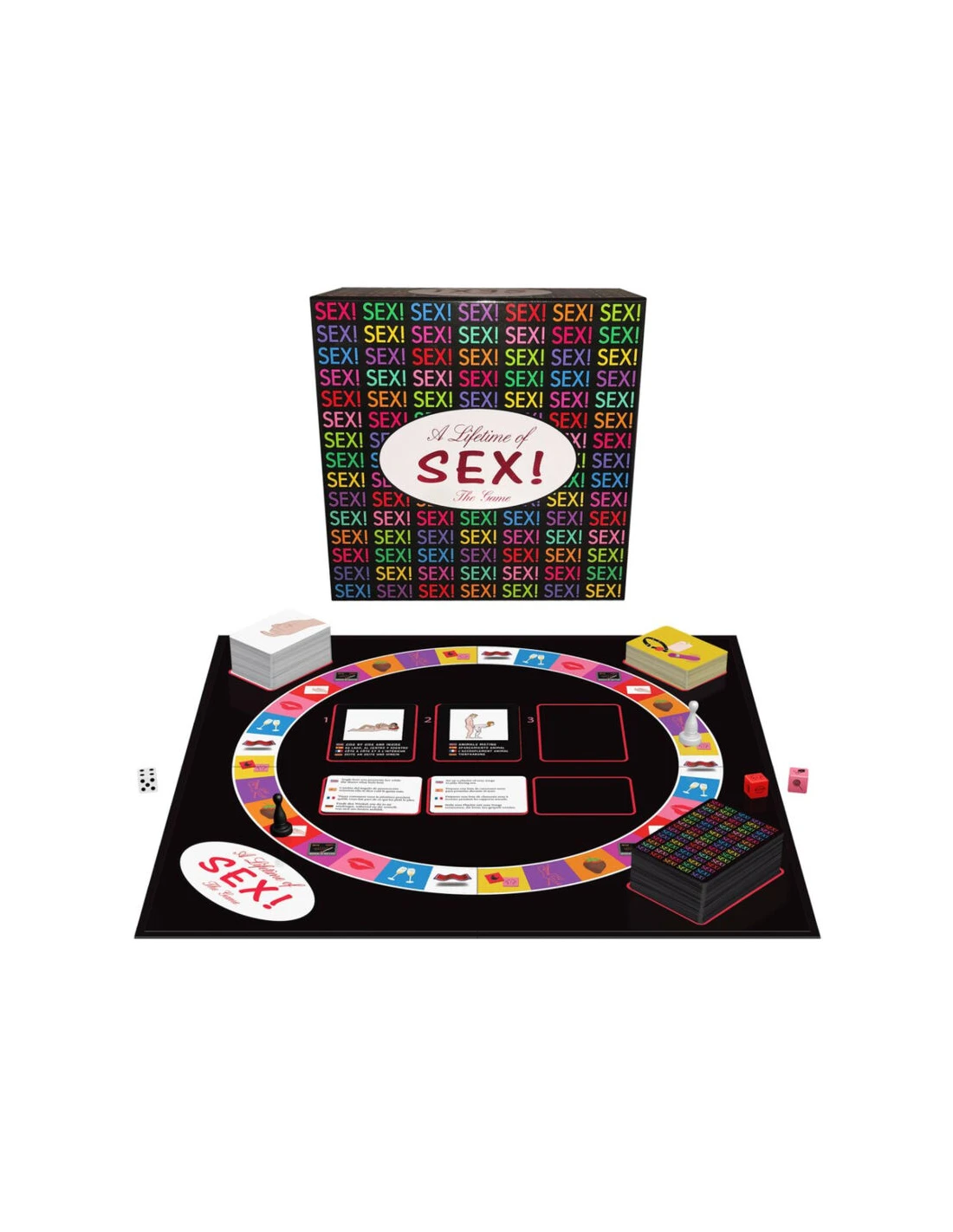 ¡Una vida de sexo! ofrece millones de combinaciones de cartas de posiciones sexuales y mejoras. Realice fantasías y juegos previos sensuales a medida que avanza por el tablero. Obtenga cartas de sexo y mejoras con las cartas de juegos previos y construya una fantasía sexual única para representar al final del juego. Cada victoria puede ser una nueva experiencia e incluso hay 8 cartas de "Dáselo a la abuela" para sus años dorados de juego.