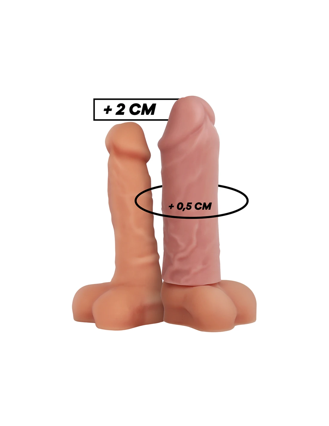 ¡Desliza la manga sobre tu erección y satisface todos sus deseos con tu nuevo tamaño aún más grueso! El material súper suave fabricado 100% en silicona médica, queda como una segunda piel o incluso mejor!