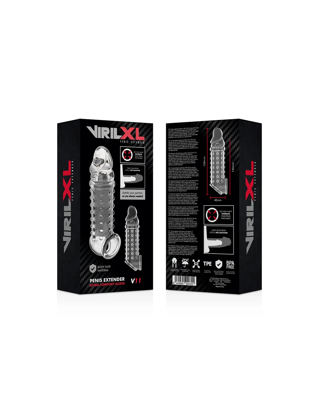 VIRILXL - EXTENSION Y FUNDA DE PENE V11 TRANSPARENTE