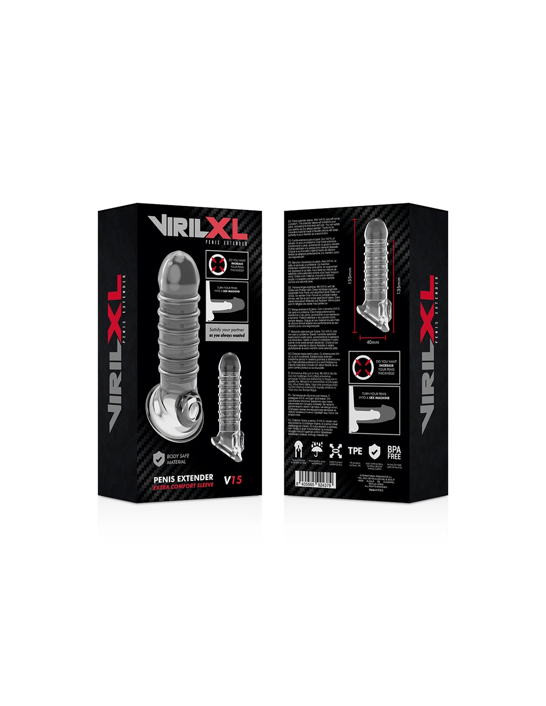 VIRILXL - EXTENSION Y FUNDA DE PENE V15 TRANSPARENTE