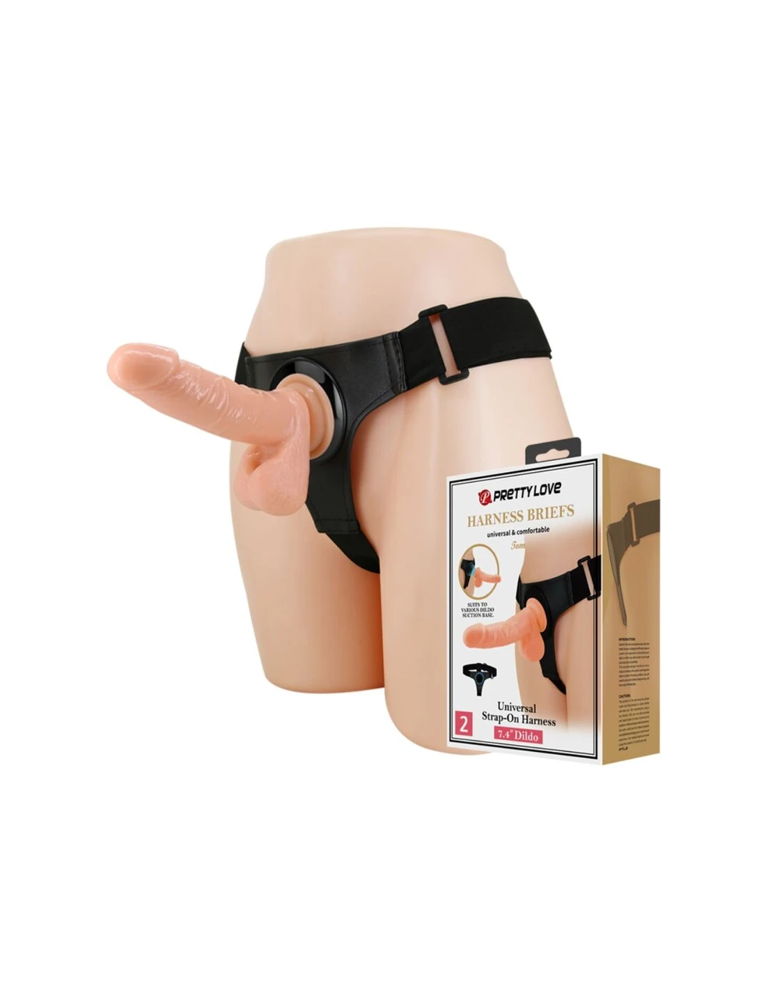 PRETTY LOVE - HARNESS BRIEFS ARNÉS UNIVERSAL CON DILDO TOM 20 CM NATURAL