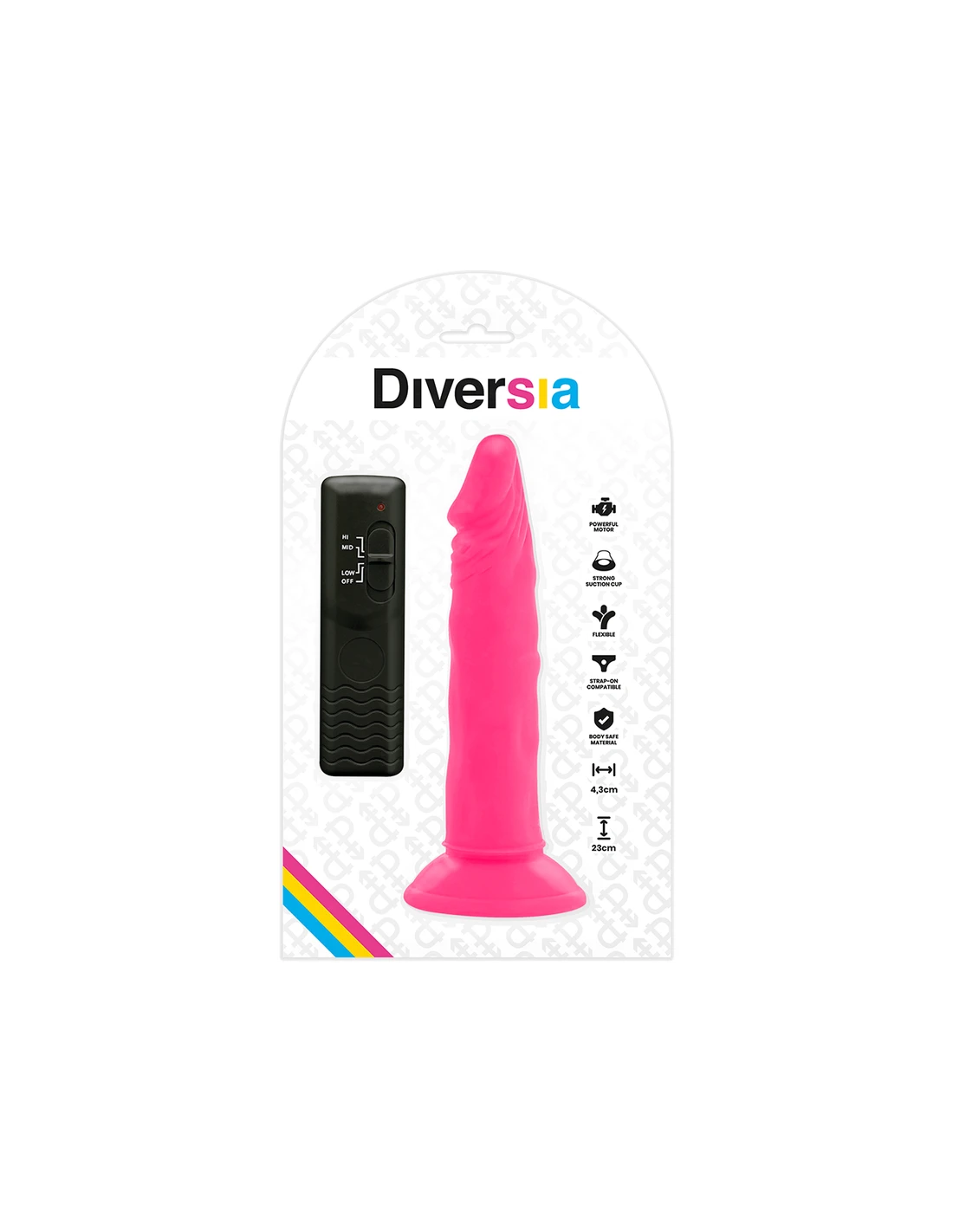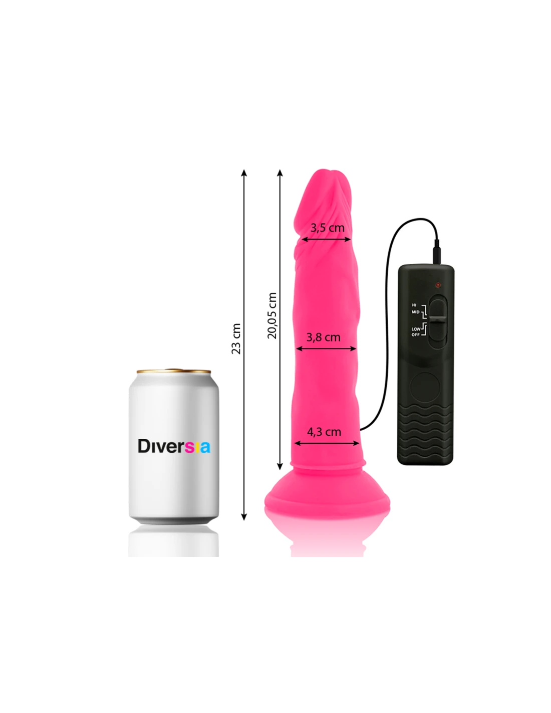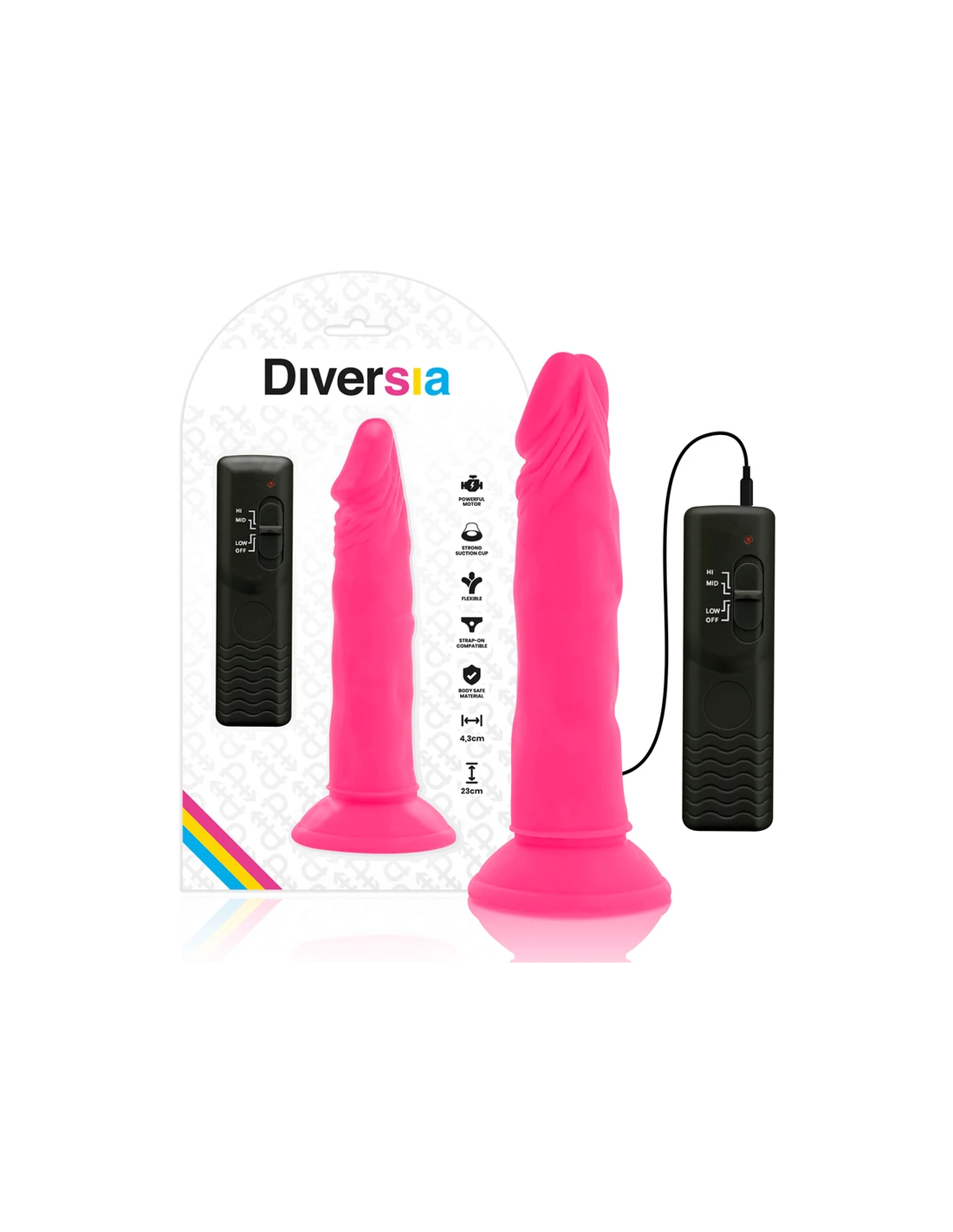 DIVERSIA - DILDO REALÍSTICO FLEXIBLE CON VIBRACIÓN ROSA 23 CM -O- 4.3 CM