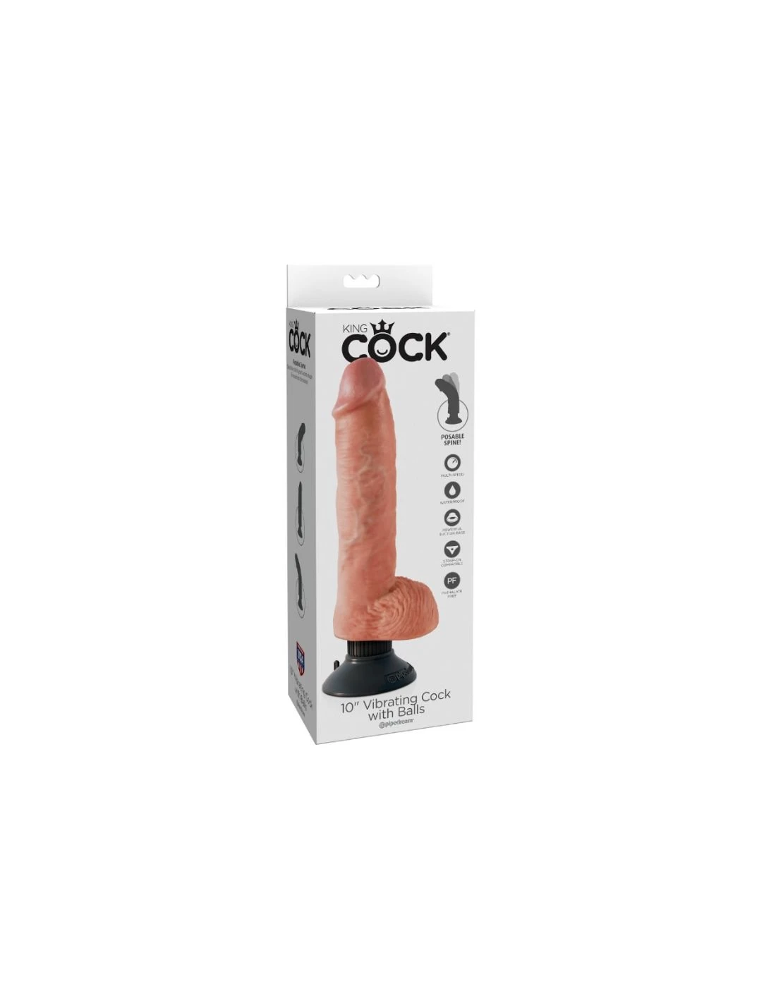 KING COCK - DILDO VIBRADOR CON TESTÍCULOS 25.5 CM COLOR NATURAL