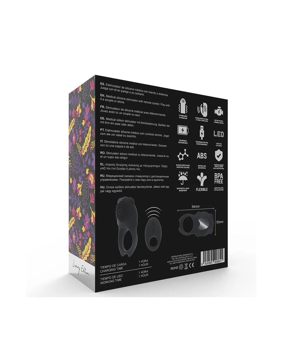 Con el práctico mando a distancia podéis controlar la vibración con comodidad y decidir quién puede tomar las decisiones. Para aventuras salvajes y preliminares excitantes el hombre también puede llevar el anillo vibrador en el pene y dejar que su compañero/a lo excite.