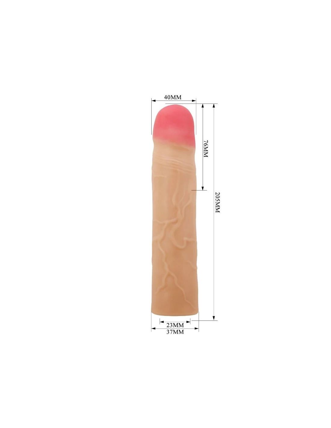 Aumente el tamaño de su pene con el extensor de pene de placer. Hecha de material ultra realista para un placer ultra realista, esta funda le brinda 3 pulgadas adicionales de largo, 35 % de circunferencia.
