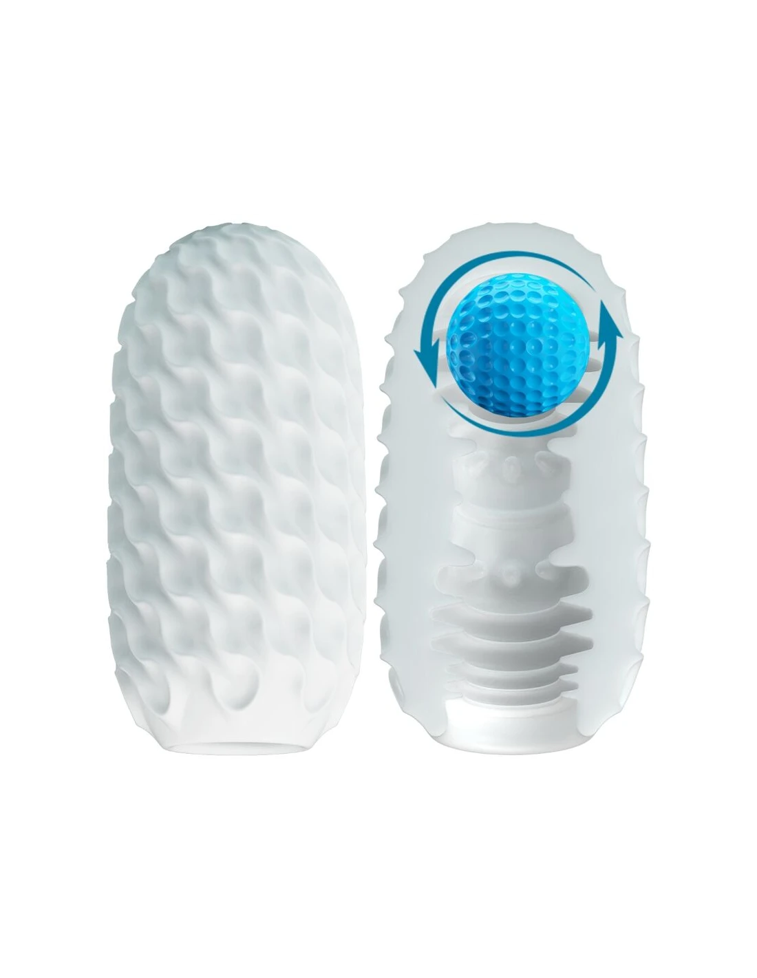 La innovadora funda está lista para acariciarte y masajearte hasta un poderoso clímax. Este lindo masturbador con forma de huevo viene con túneles internos texturizados y una bola mágica.