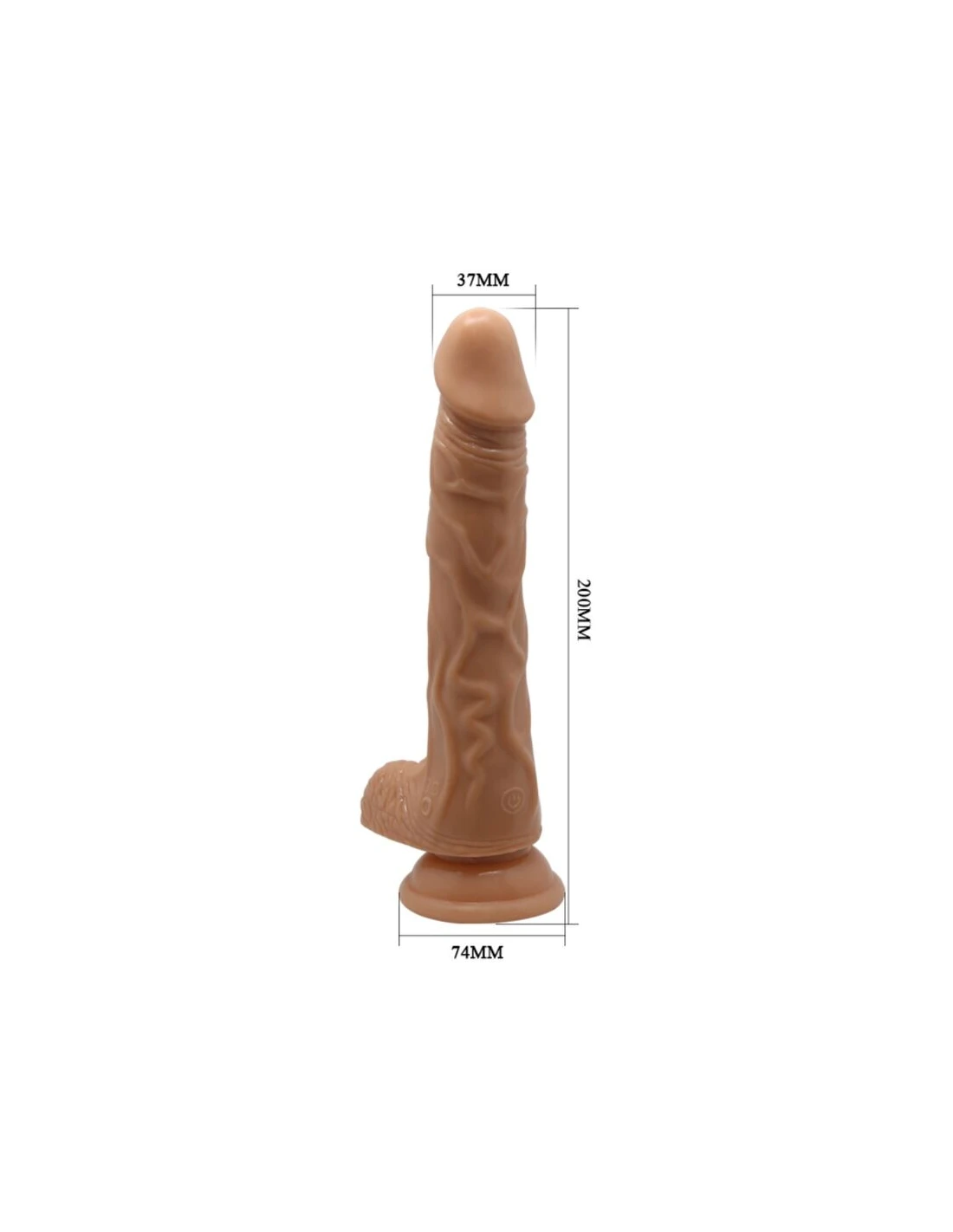 Disfruta del festín palpitante y giratorio! ¡El vibrador con tecnología punta para sensaciones realistas! Este vibrador realista se destaca por sus extraordinariamente intensas funciones de vibración y empuje giratorio en 7 modos. Se siente casi como si fuera real debido a su glande, venas y testículos realistas y pronunciados. La ventosa hace posible el placer de manos libres. Todas las funciones se pueden controlar fácilmente con solo presionar un botón. Recargable: incluye un cable USB.