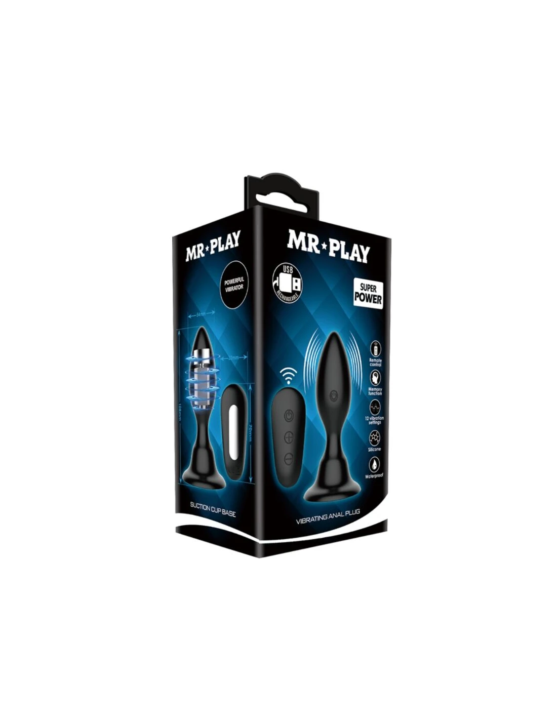 MR PLAY - PLUG ANAL CON VIBRACIÓN NEGRO CONTROL REMOTO