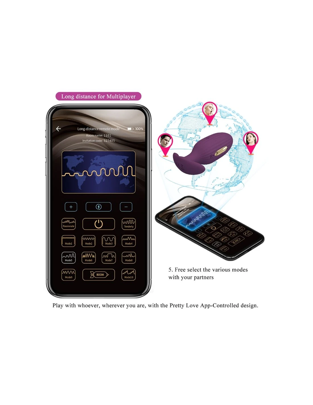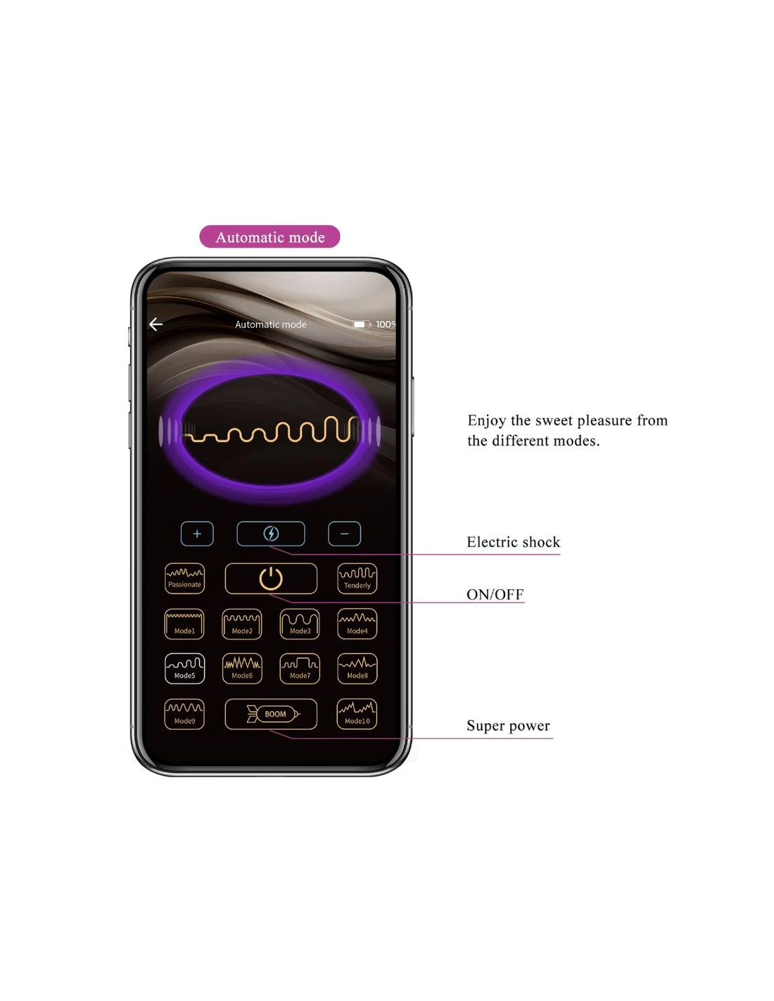 - Función:12 funciones de vibración 3 funciones de descarga eléctrica Aplicación móvil Control de larga distancia