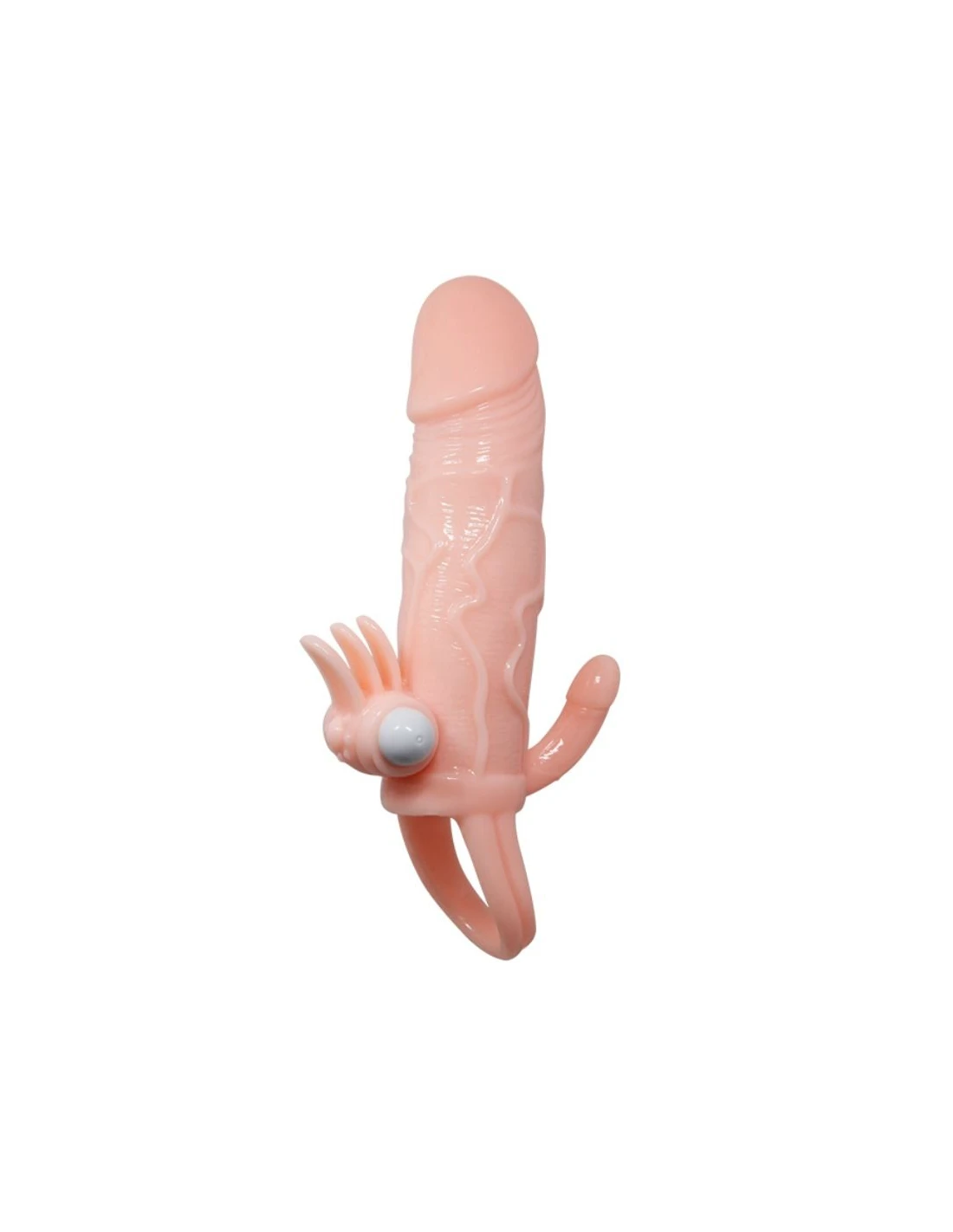 BAILE - BRAVE MAN FUNDA PENE ANAL Y CLITORIS VIBRADOR 16.5 CM NATURAL