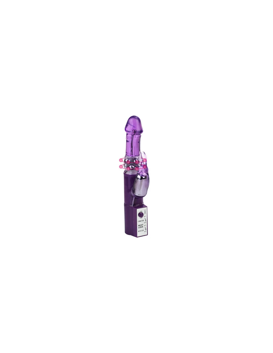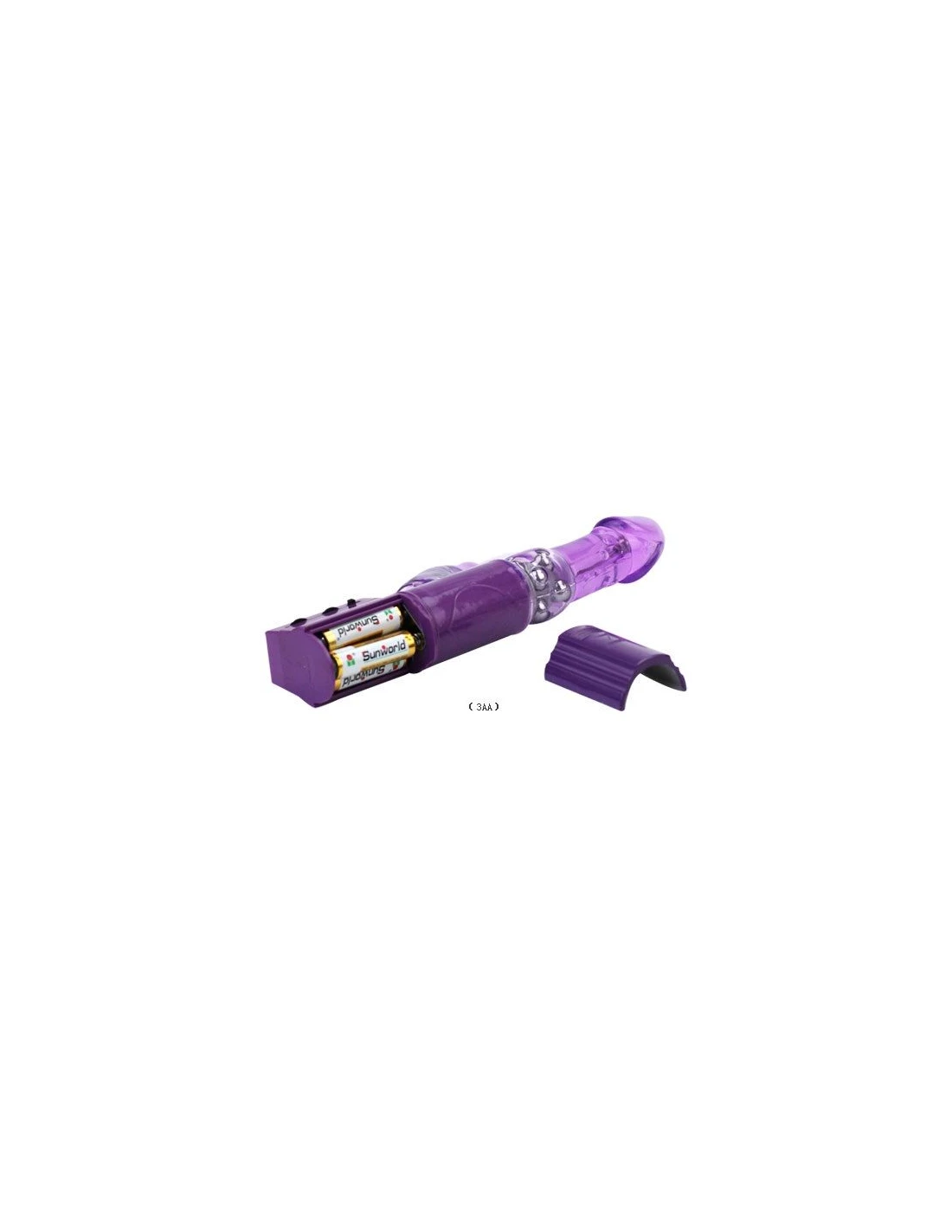 Fabricado con TPE seguro para el cuerpo y libre de phtalatos, este vibrador con doble estimulación dispone de dos hileras de brillantes perlas metálicas, un eje de rotación suave y un potente estimulador con forma de conejito para tu clítoris que te estimulará y satisfacerá.