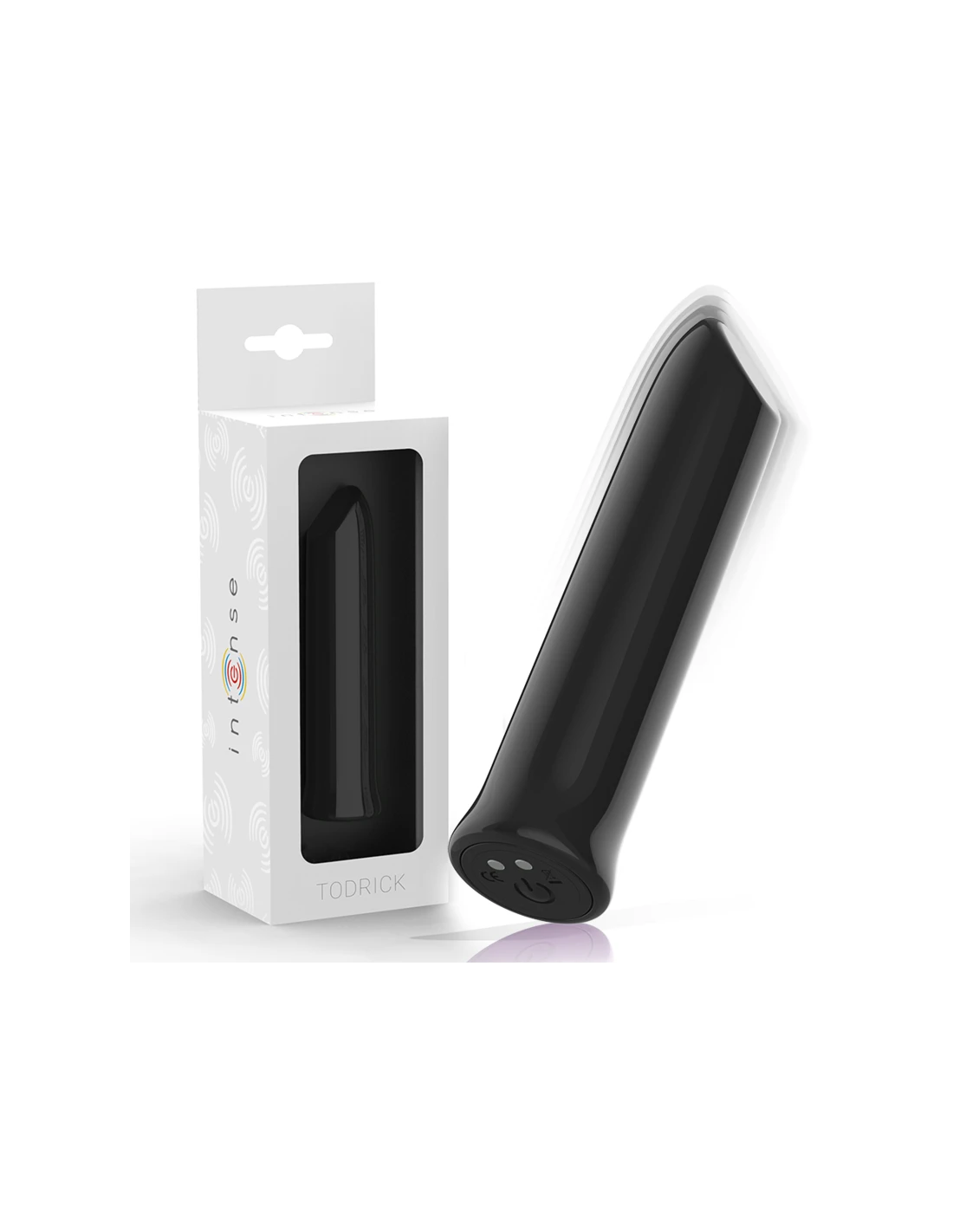 La bala vibradora TODRICK de la marca INTENSE es un elegante y compacto dispositivo de estimulación en un vibrante color morado.