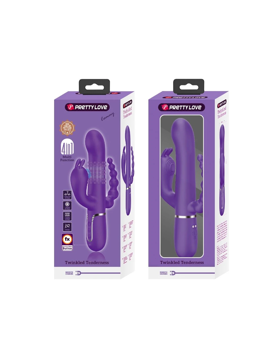 El Triple Vibrator de Pretty Love es un vibrador de conejo elegantemente curvado con un estimulador anal, que proporciona estimulación vaginal, del clítoris y anal simultánea.