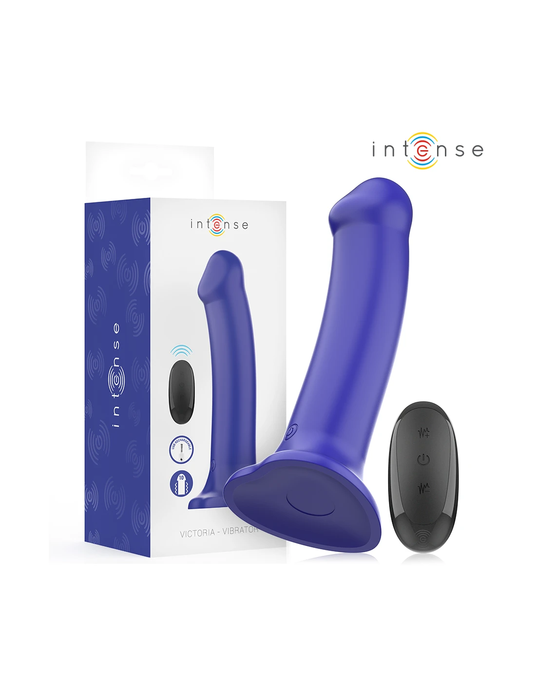 INTENSE - VICTORIA VIBRADOR CON VENTOSA 10 VIBRACIONES AZUL OSCURO CONTROL REMOTO