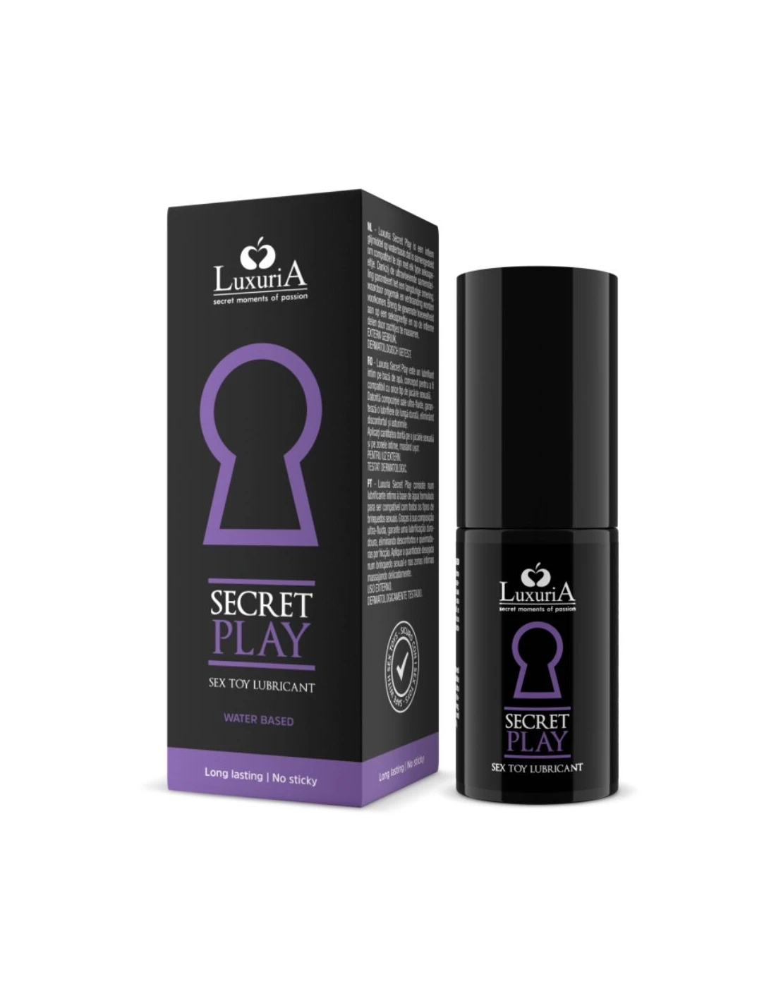 Luxuria Secret Play es un lubricante íntimo a base de agua formulado para ser compatible con cualquier tipo de juguete sexual.