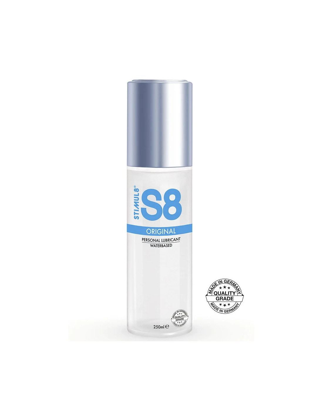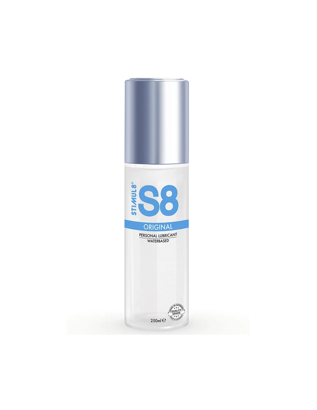 El lubricante original premium Waterbase de S8 es la solución perfecta para quienes buscan un lubricante de calidad y seguro para el cuerpo que mejore la intimidad y facilite sus encuentros íntimos. Esta fantástica fórmula de larga duración de S8 no contiene parabenos, ftalatos, gluten ni sulfatos, ni colorantes ni conservantes agresivos, lo que le confiere un atractivo irresistiblemente natural. El lubricante original a base de agua S8 cumple con todas las normativas vigentes de la UE en materia de productos para el cuidado íntimo y ofrece una alternativa fiable, transparente y con un precio competitivo frente a otras opciones no homologadas del mercado.