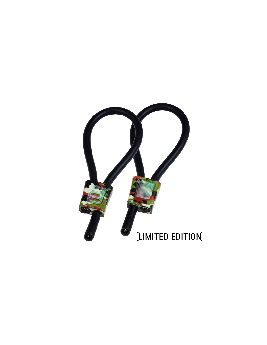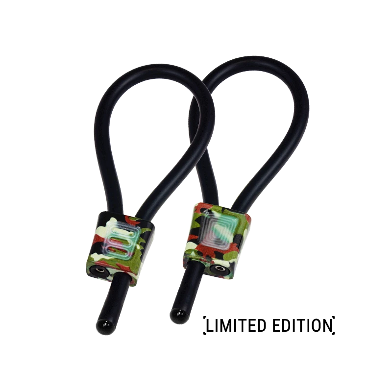 - Los ElectraLoops están hechos de caucho súper conductor (6,5 mm de espesor) con un estrangulador de ajuste de aluminio mecanizado. El diseño de camuflaje único se ha aplicado utilizando un proceso de hidro-inmersión seguro para el cuerpo que también aísla el estrangulamiento y evita que emita cualquier estimulación.