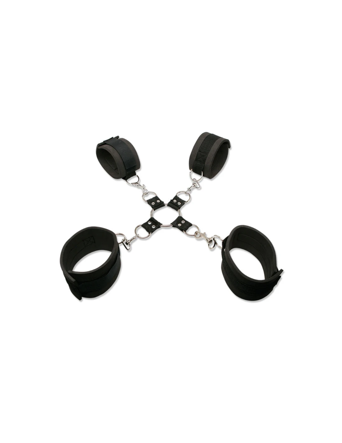 Las esposas se unen con el hogtie con cadenas de metal y se ajustan fácilmente con velcro a la mayoría de los tamaños.