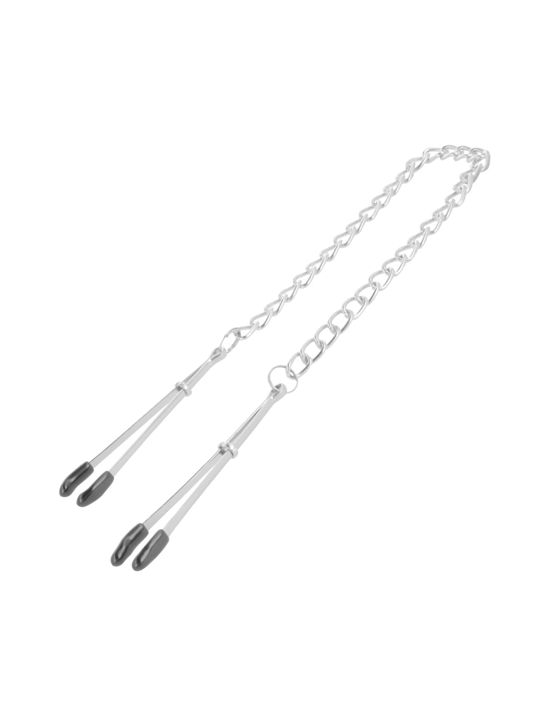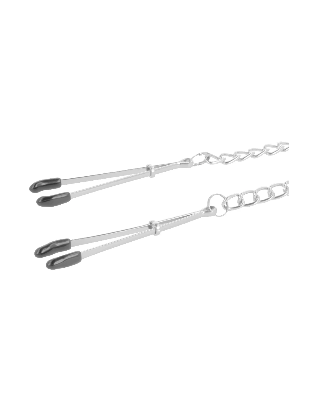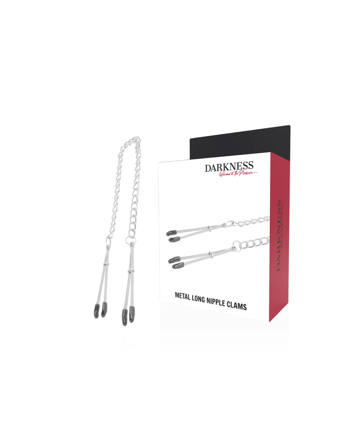 ¡Estas pinzas para pezones con cadena de Darkness! son unisex y muy fáciles de utilizar. Las pinzas y la cadena se han elaborado con acero inoxidable y aluminio. No contienen níquel. Puede utilizar las pinzas para pezones para sus traviesos secretos o como complemento estimulador mientras penetra a su amante.