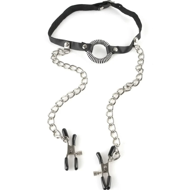 FETISH FANTASY SERIES - MORDAZA CON PINZAS PARA PEZONES