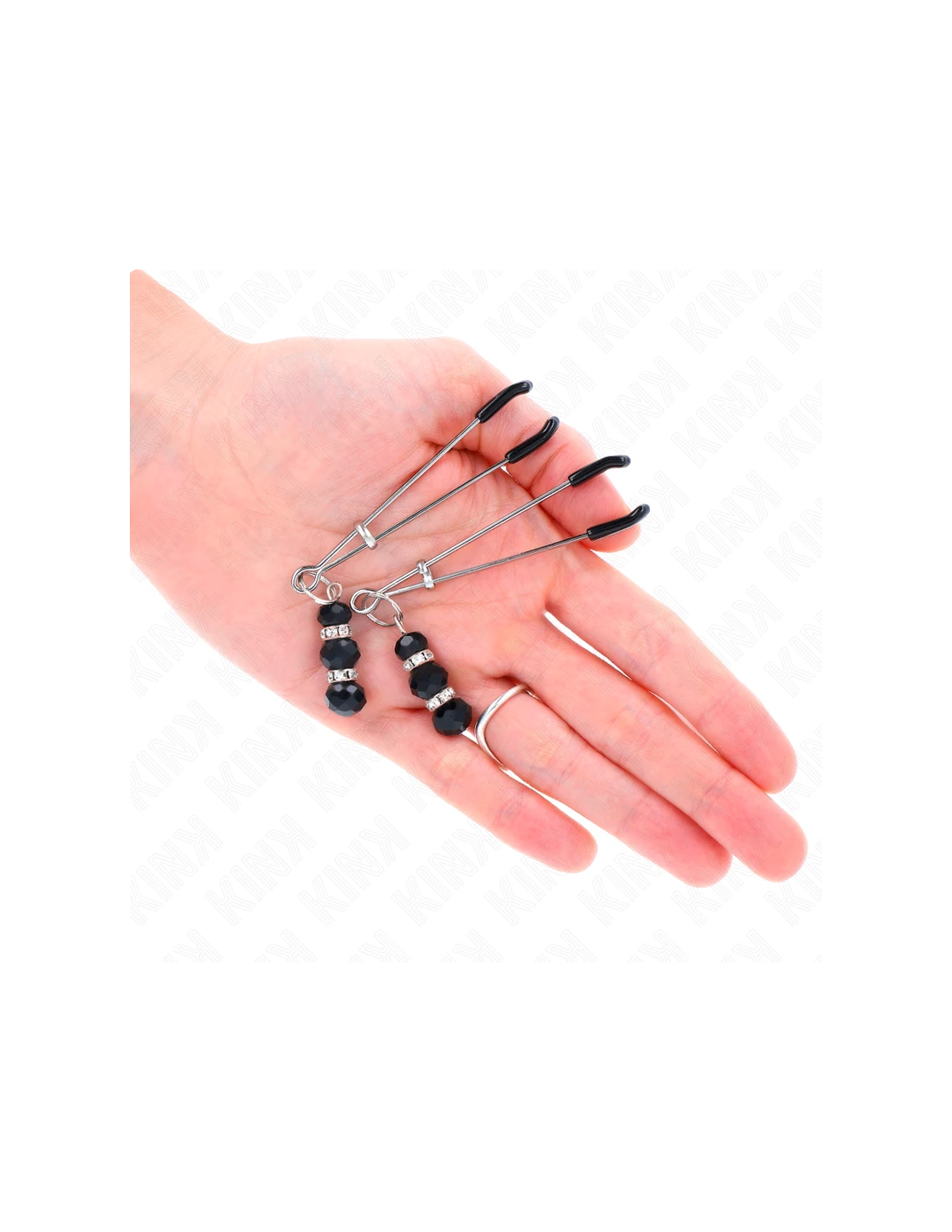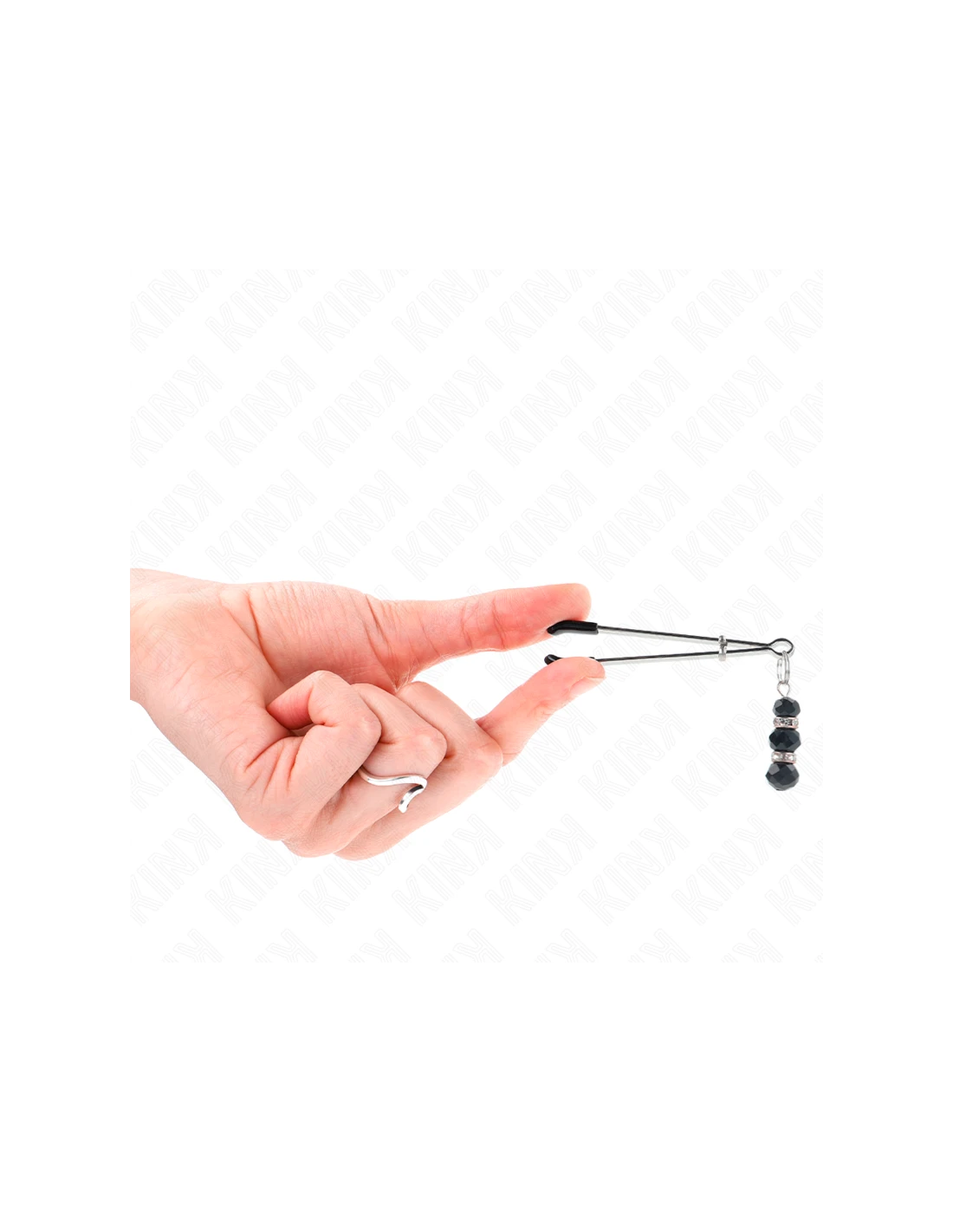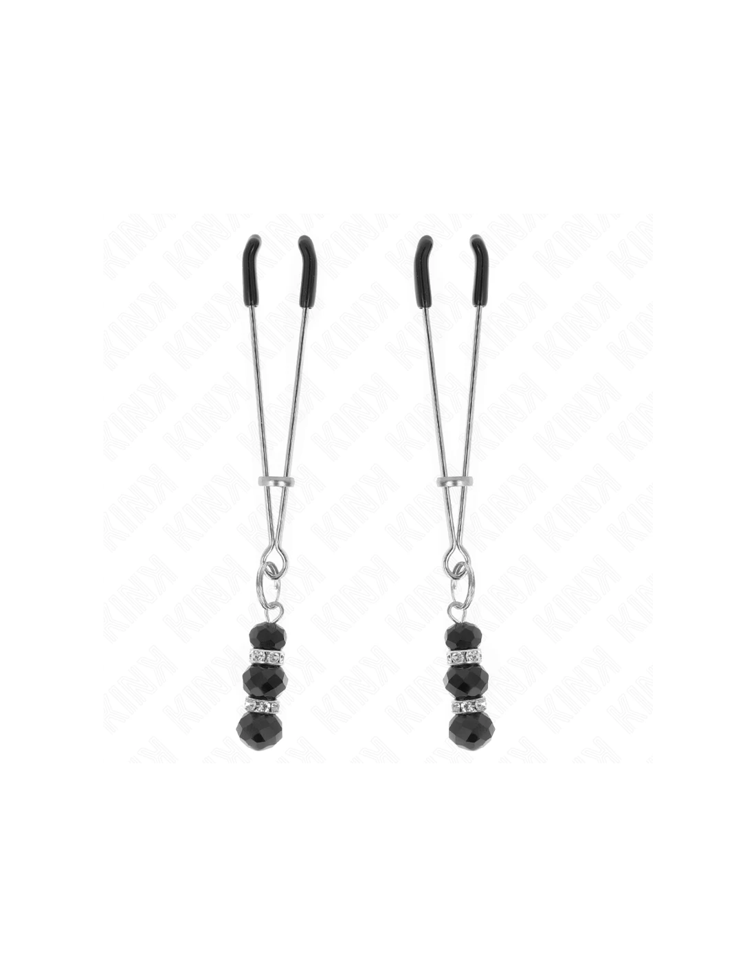 KINK - PINZAS PARA PEZONES PLATEADA FINA CON TRIPLE BOLA DE VIDRIO NEGRO 7 CM