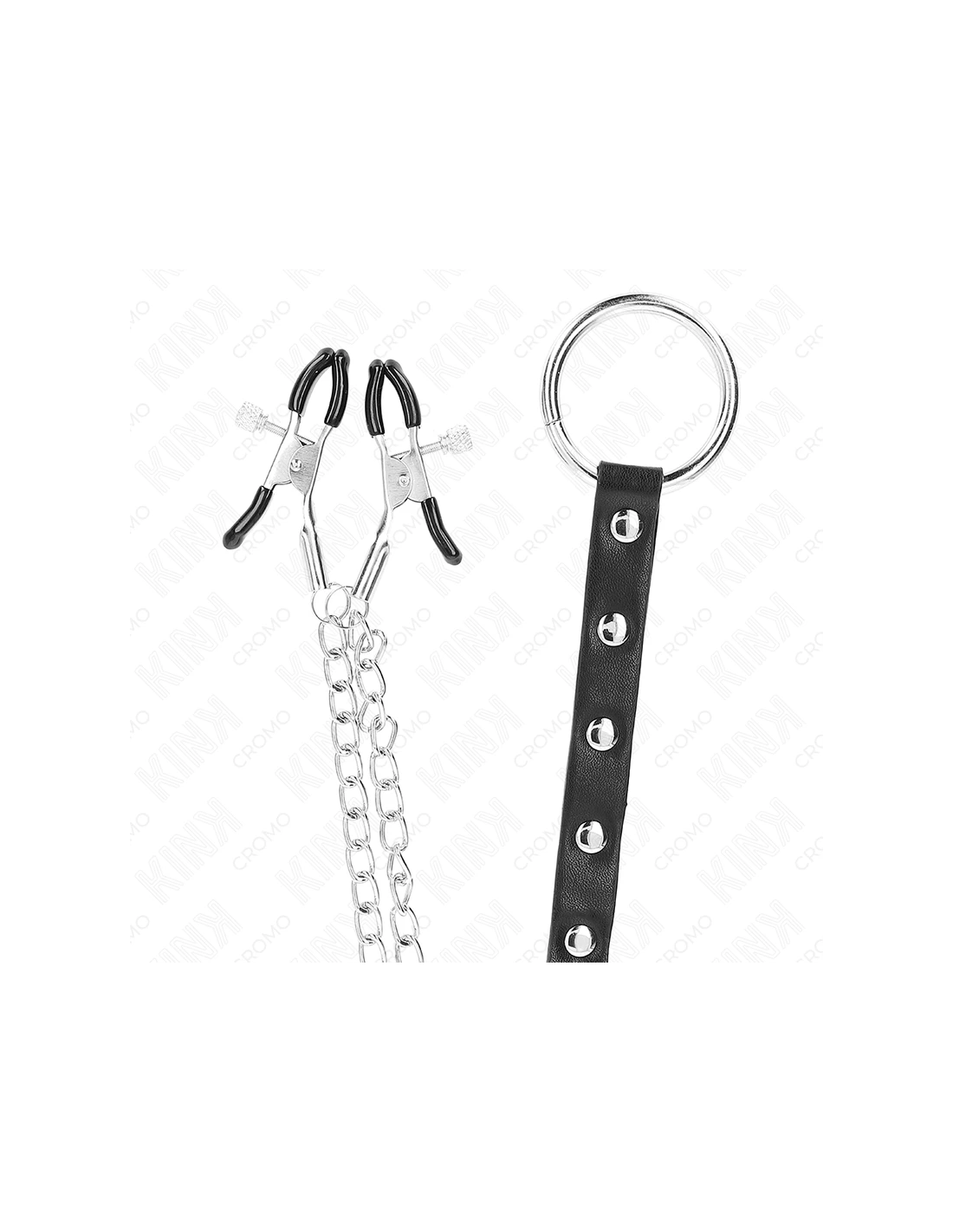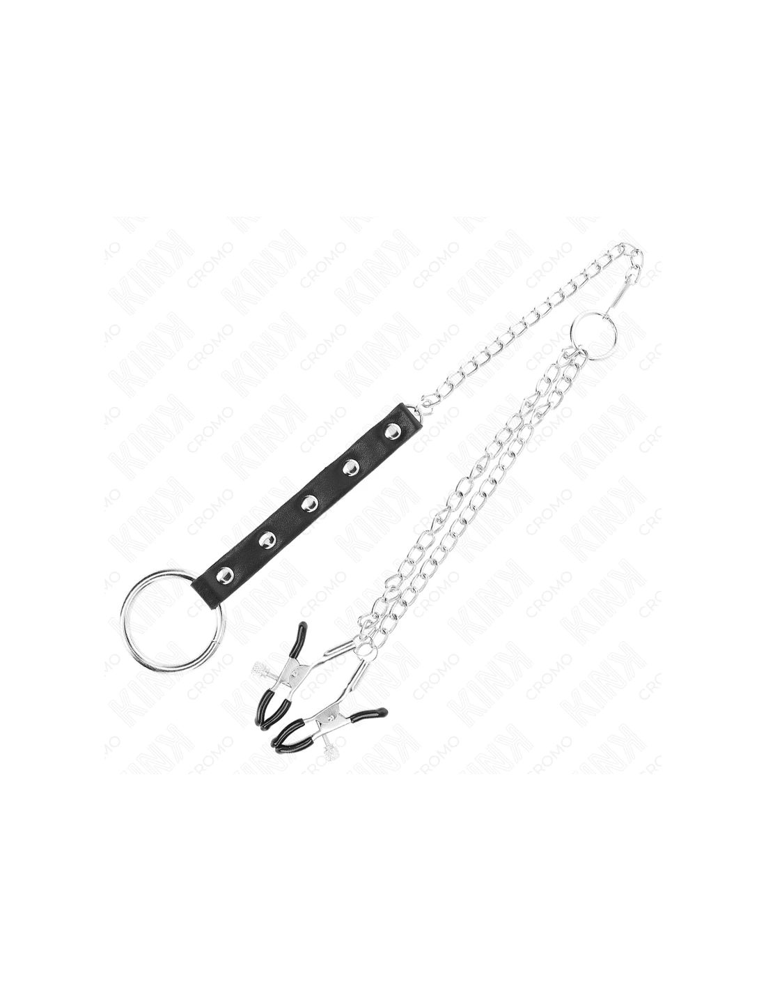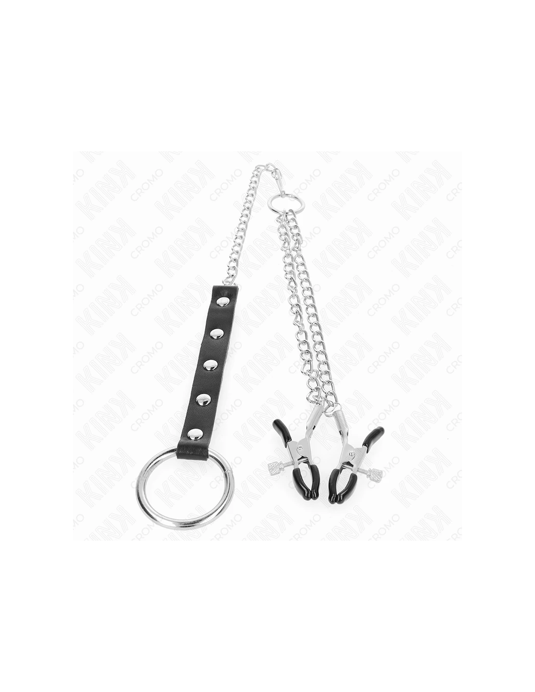 KINK - ANILLO PENE METAL CON CADENA Y PINZAS PARA PEZONES AJUSTABLE