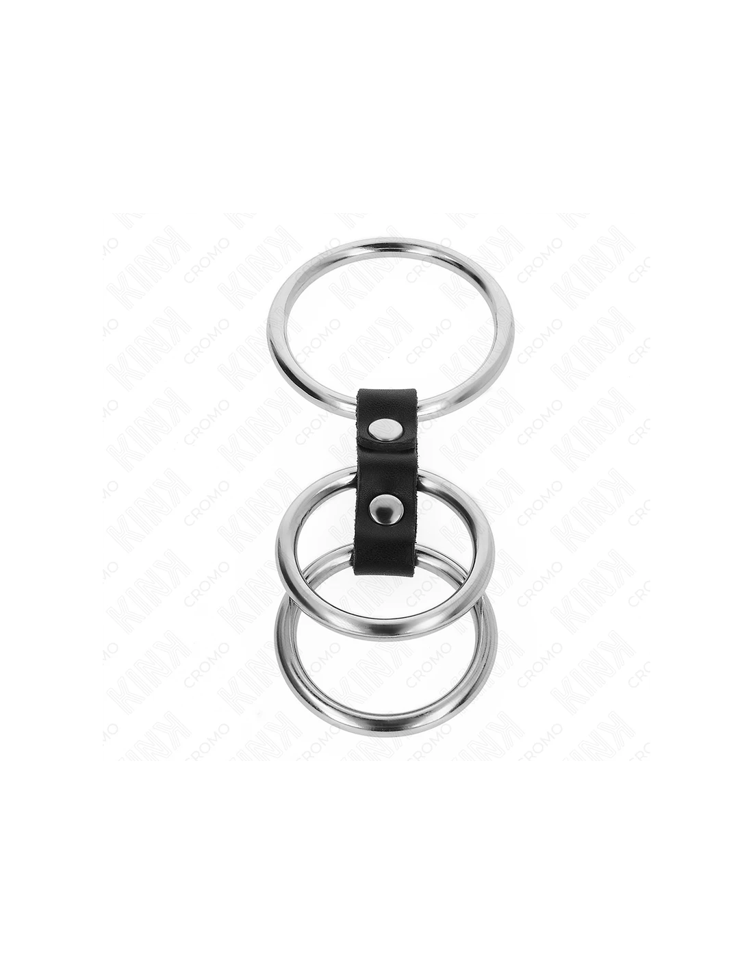 KINK - ANILLO PENE TRIPLE METAL 3.7 CM A 5 CM CONECTADOS CON CUERO
