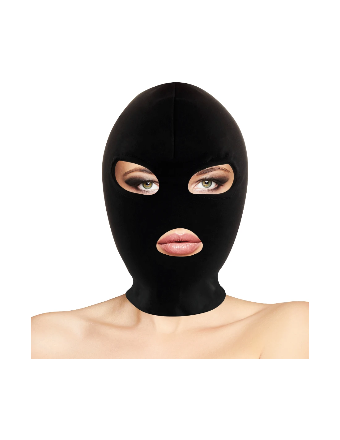 Confortable máscara / capucha con apertura para boca y ojos. Está diseñada para ajustarse perfectamente a la cabeza. El tejido solo permite que, entre un hilillo de luz, por lo que impide la visión y despierta otros sentidos. La máscara / capucha sirve para ambos sexos, y su tejido fino y ligero permite respirar fácilmente y oír cualquier chasquido. Y, lo mejor, ¡tendrás acceso a su boca!