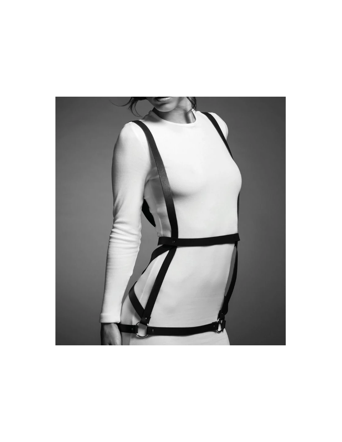 Este arnés con forma de vestido inspirado en el bondage clásico, combina a la perfección con tus mejores conjuntos de ropa, lencería o simplemente sobre tu piel. Añade un toque atrevido a tus conjuntos preferidos.