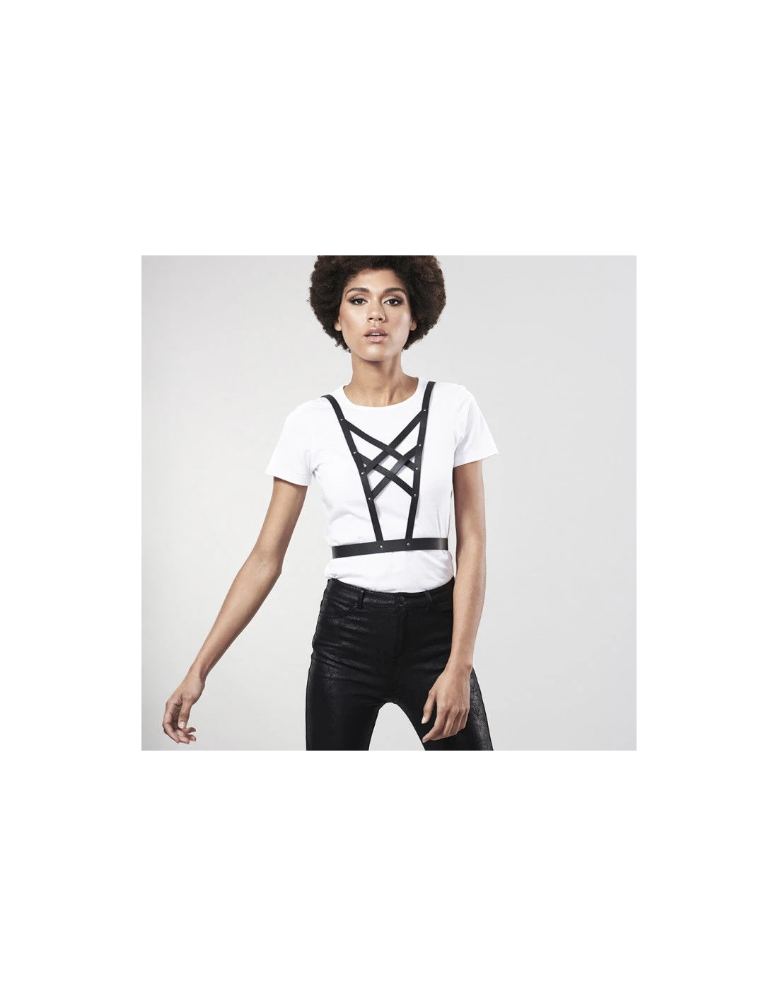 Las correas de este arnés decoran la zona del pecho. Combínalo con tus mejores conjuntos de ropa, lencería o simplemente con tu piel. Los tirantes de este accesorio pueden cruzarse en tu espalda.