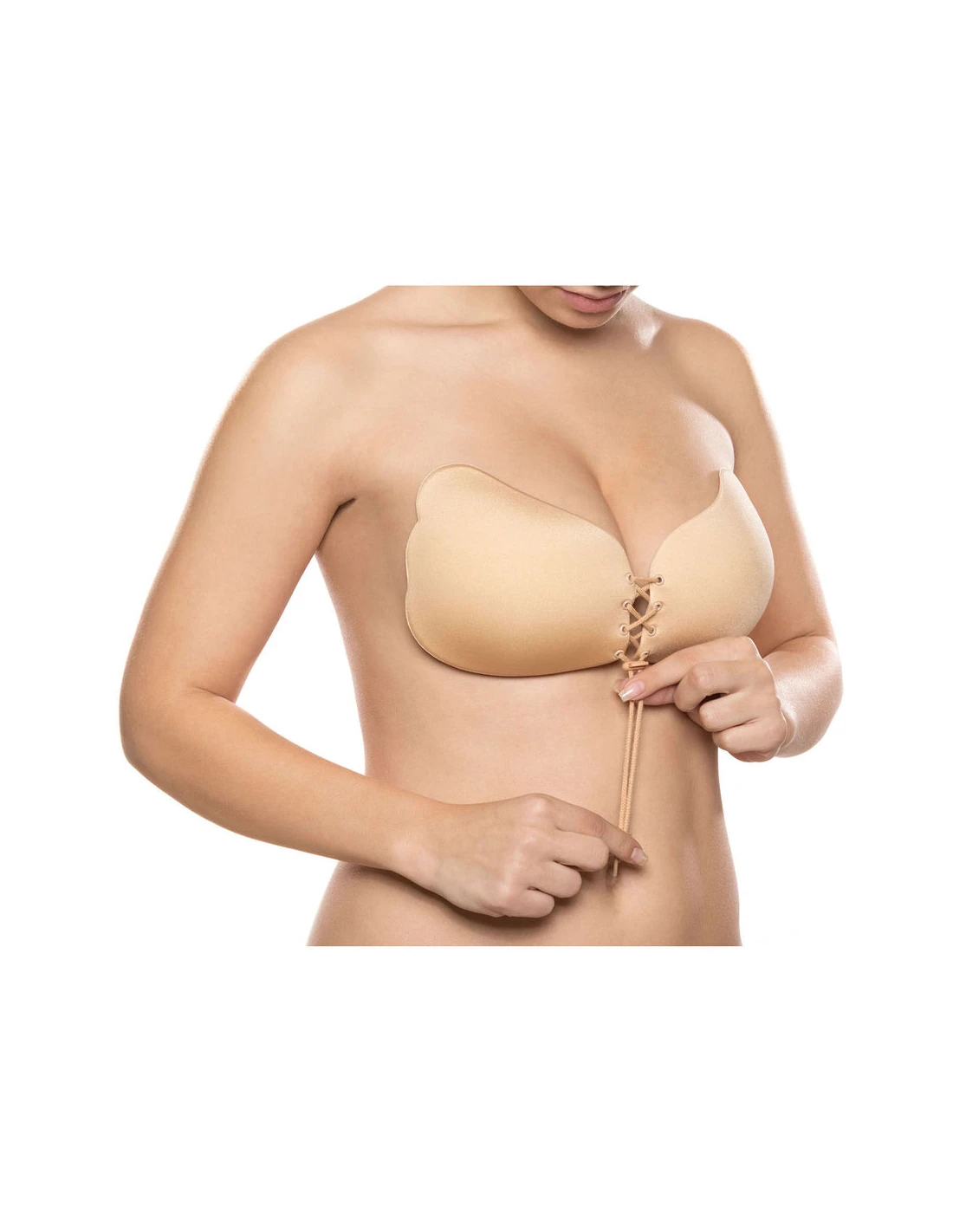 El Lace Bra proporciona un corte mejorado y un soporte sin tirantes óptimo. Inconsútil e invisible debajo de la ropa, el sujetador está diseñado para levantar y dar forma a sus senos. Las copas adhesivas son fáciles de aplicar, y el cierre móvil permite ajustar el posicionamiento. Cuanto más apretado es el broche, más efecto de escote hay.