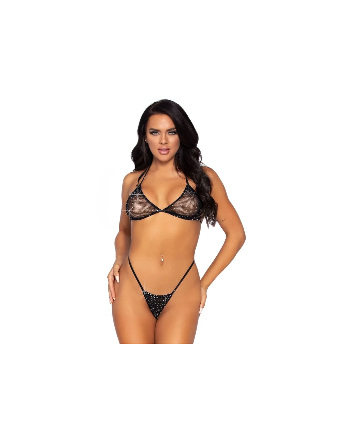 - Conjunto de rejilla y strass que incluye un top de bikini y un tanga