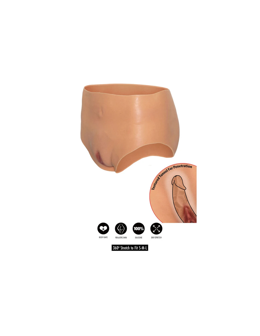 A través de la vagina abierta hay la opción de una penetración profunda en el túnel texturizado. En el interior de la braguita hay un tubo suave para alojar el pene. Este tubo termina en una apertura única para orinar en la parte superior de la vagina. Hecha de 100% silicona pura y con una vagina muy realista y muy follable, la Braguita con Vagina garantiza una experiencia emocionante y horas de pasión.