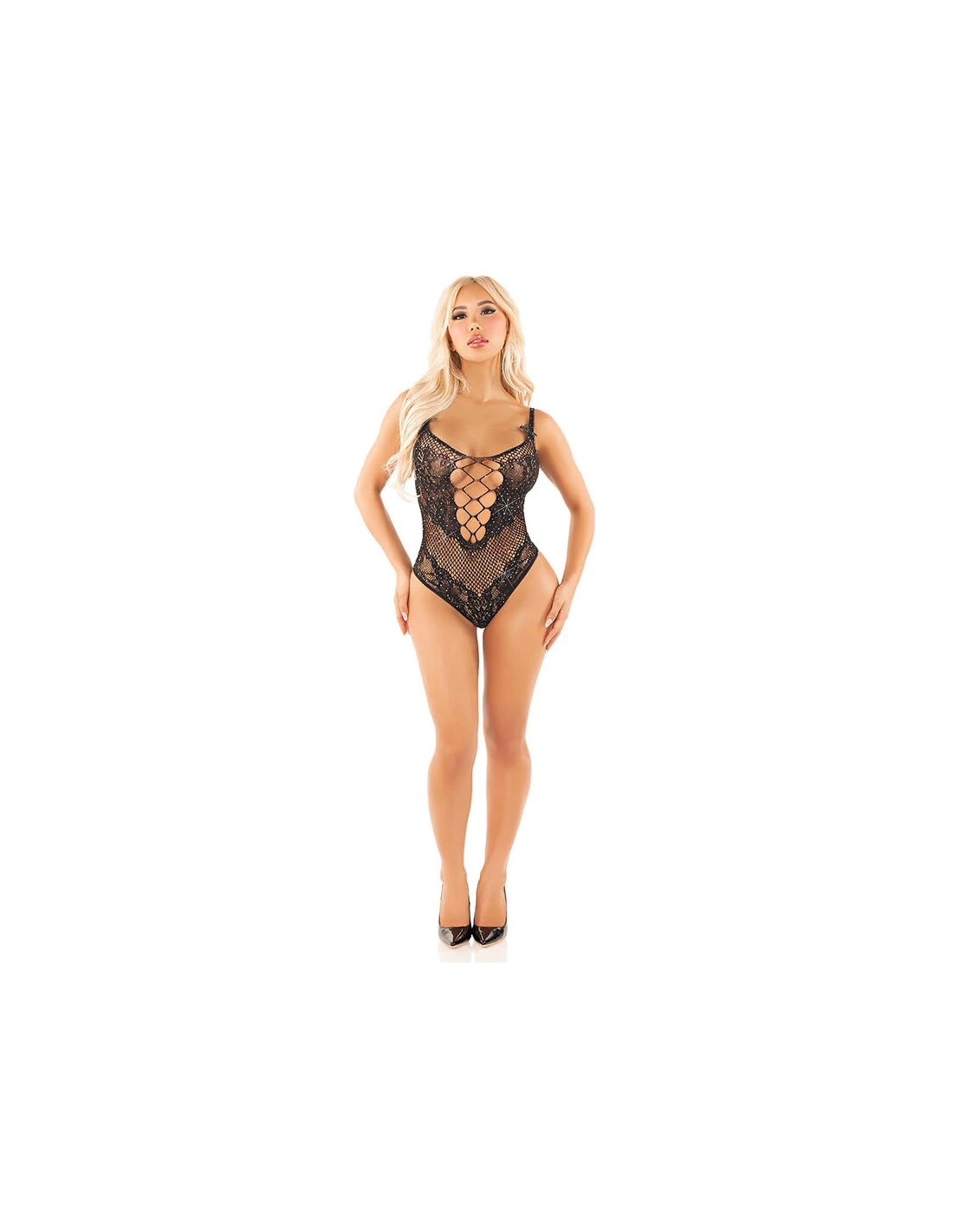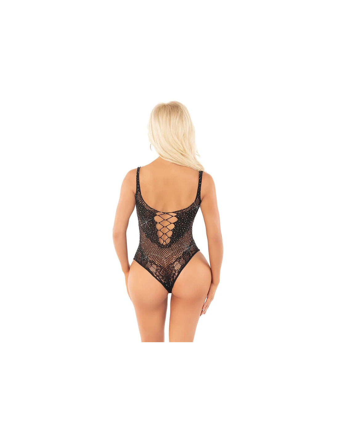 LEG AVENUE - BODY DE REJILLA CON DIAMANTES NEGRO TALLA ÚNICA